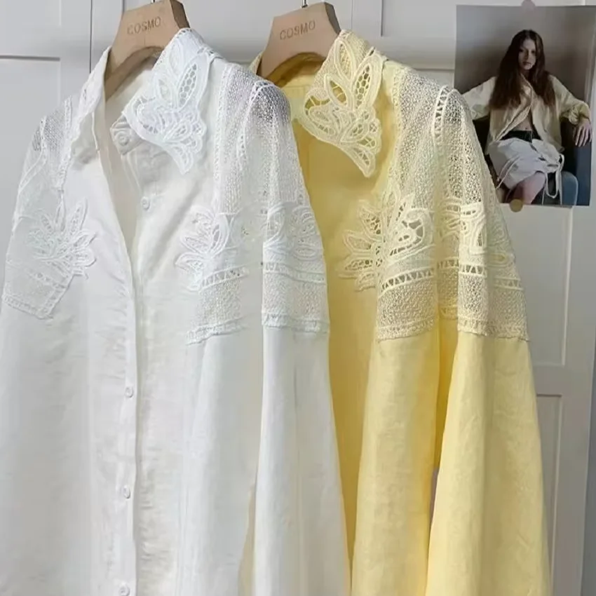Flowers Cotton Shirt for Women Long Sleeve Blouses and Shirts Female Clothing Autumn Loose Casual Top