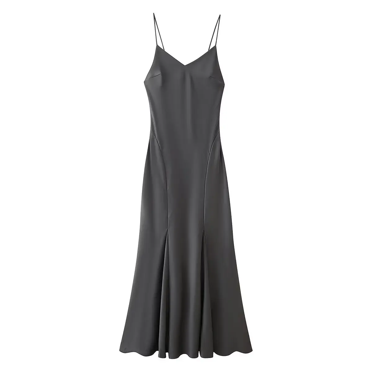 TAOP&ZA 2025 Autumn New Temperament Slim Sexy Backless Satin Texture Draped V-neck Midi Dress 2590934