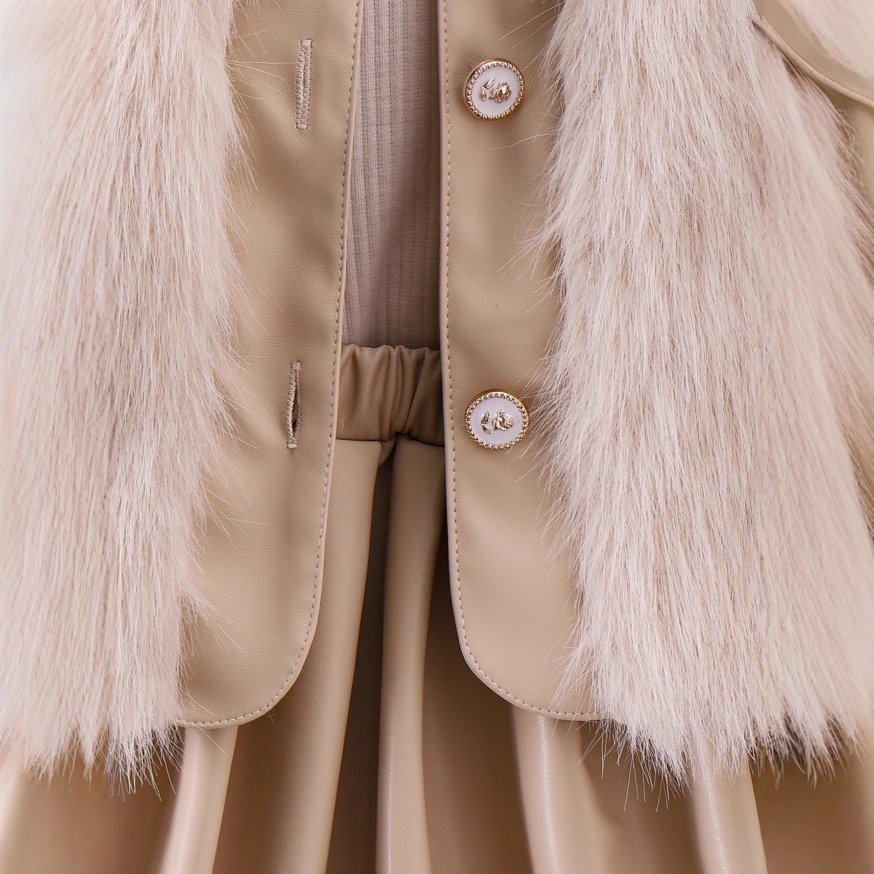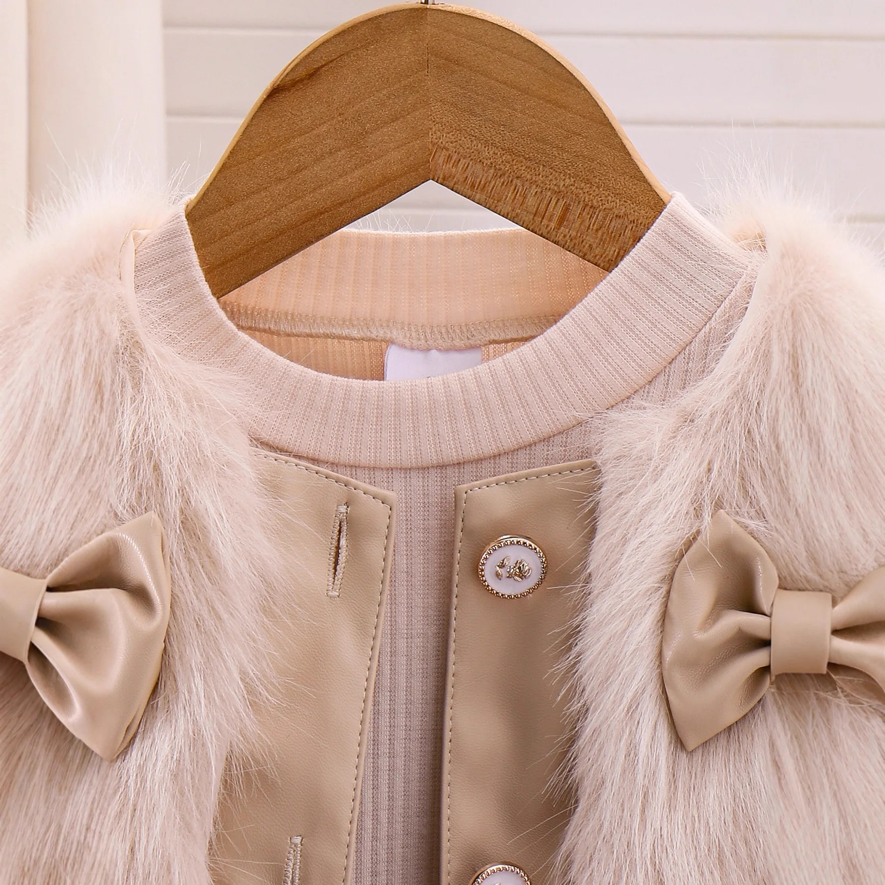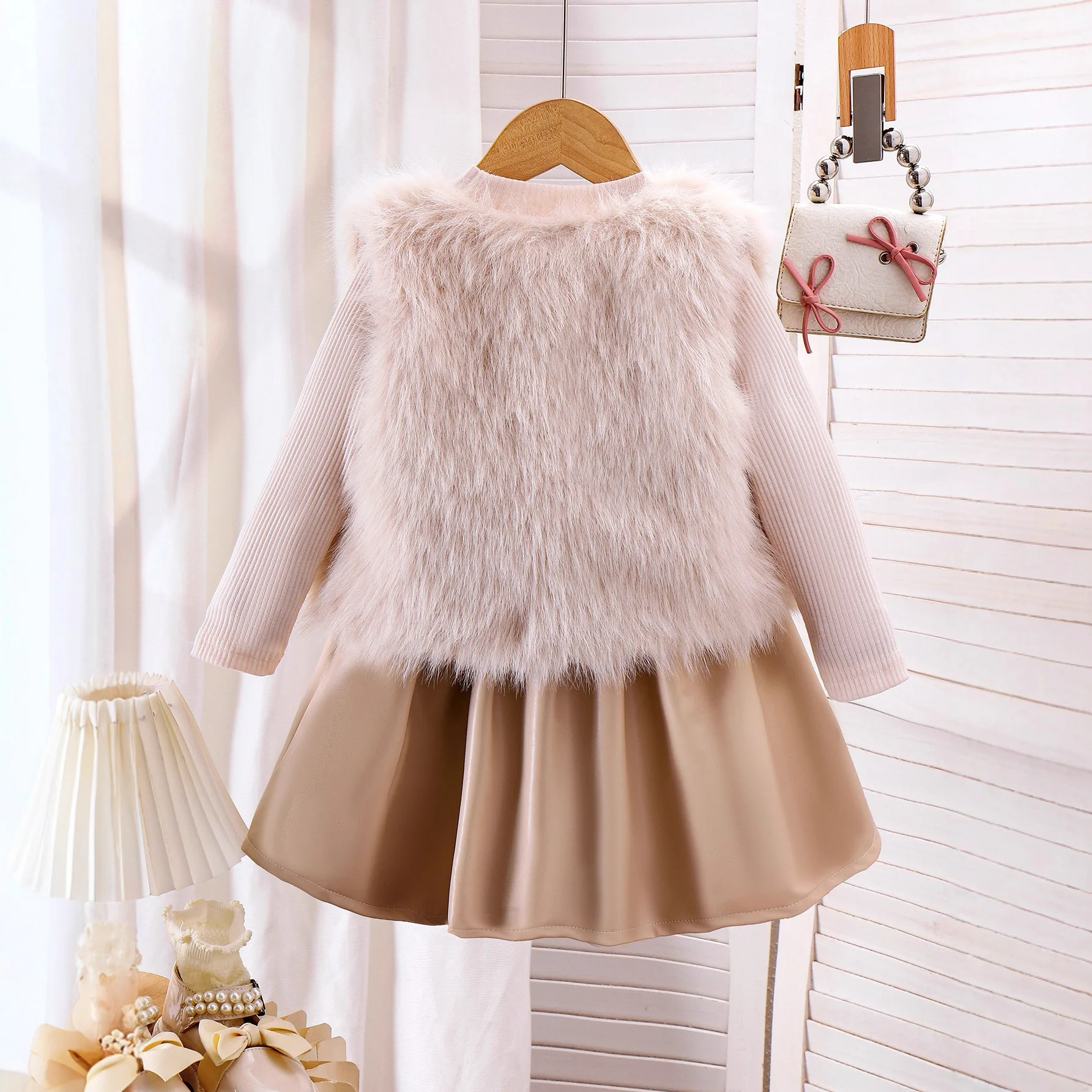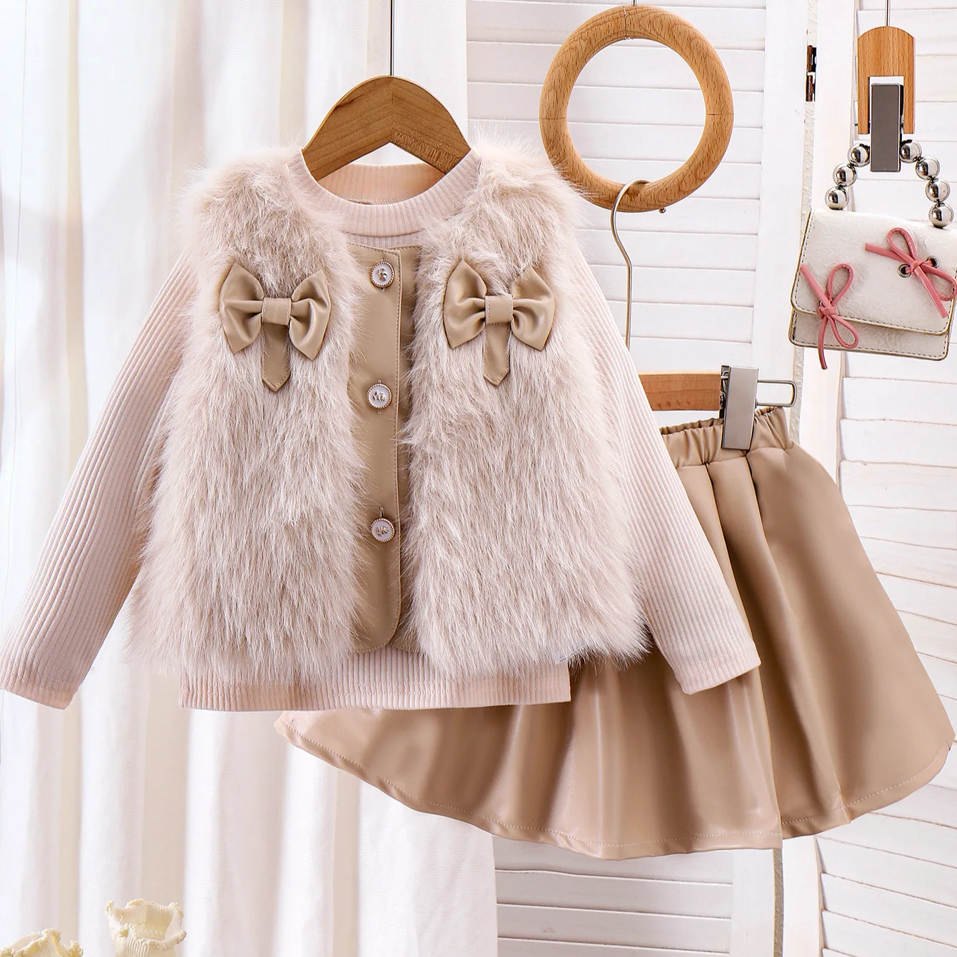 2025 Autumn And Winter New Fashionable Style Girls Suit Solid Color Long Sleeve Inner Vest Pleated Skirt