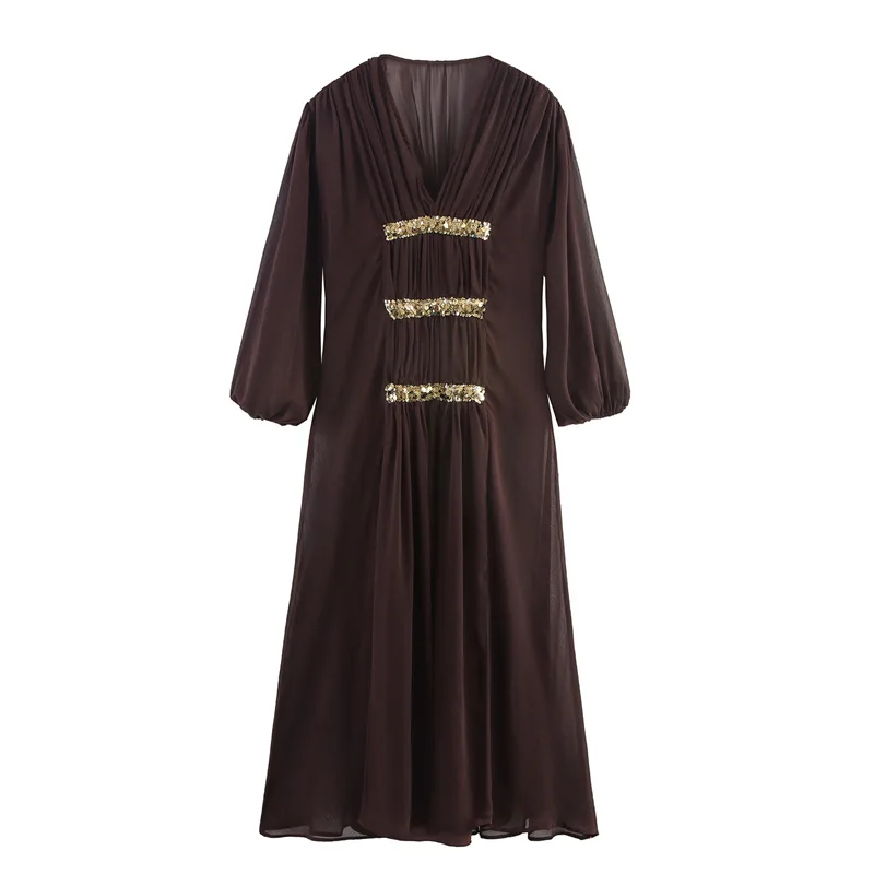 2025 Autumn and Winter New Women’s Dress Fleece Long Sleeve Floral Hollow Butterfly Knot Women’s Clothing