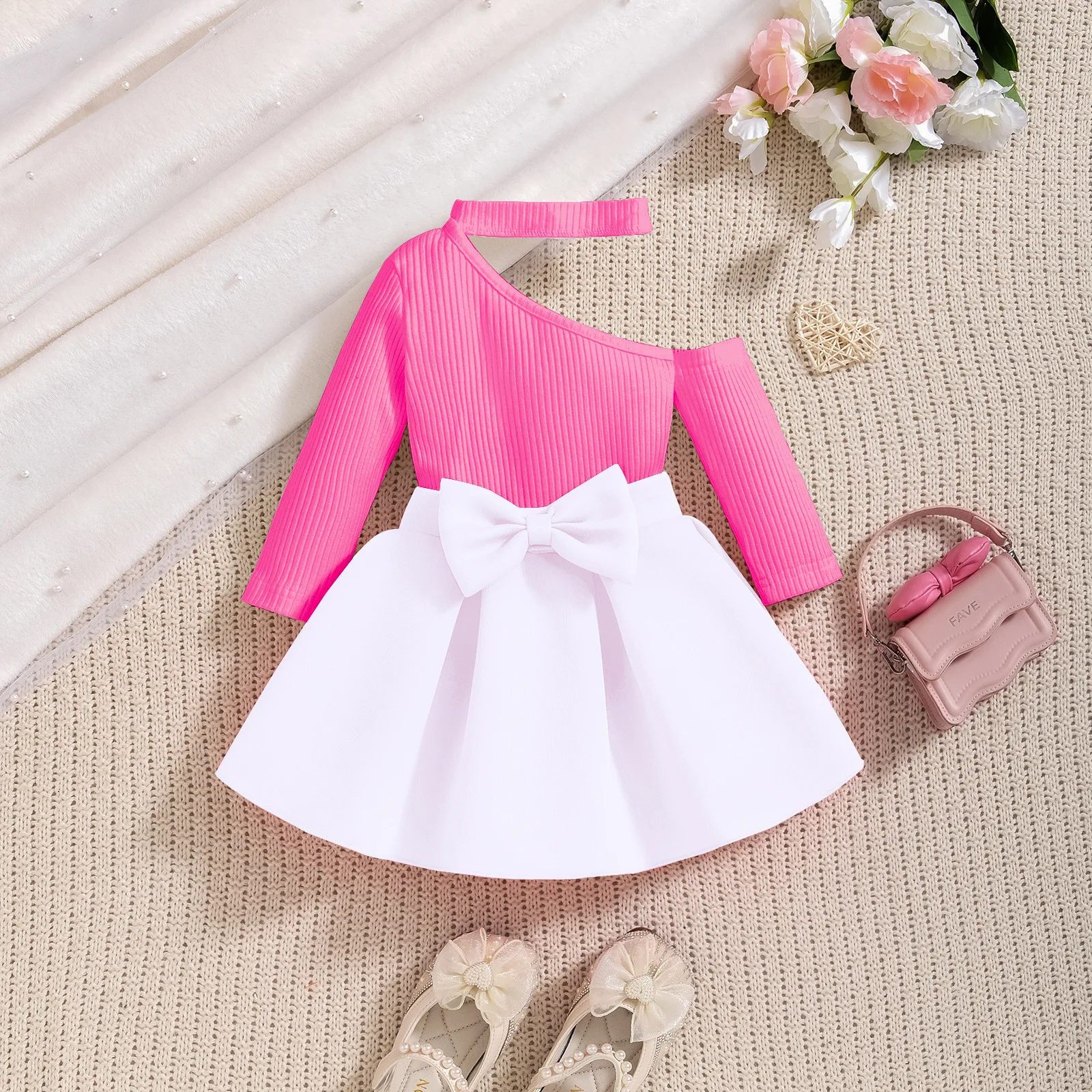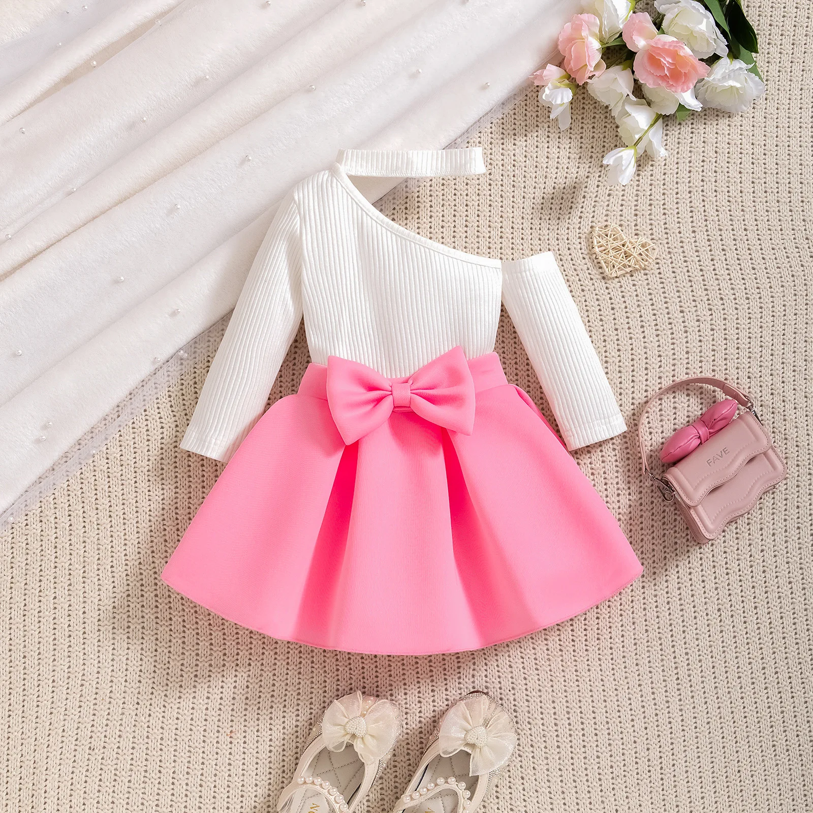 2025 Autumn Cheap Girls Clothing Suppliers China Striped Halter Neck Top Bow Lotus Leaf Skirt 2Pcs Toddler Clothes Sets