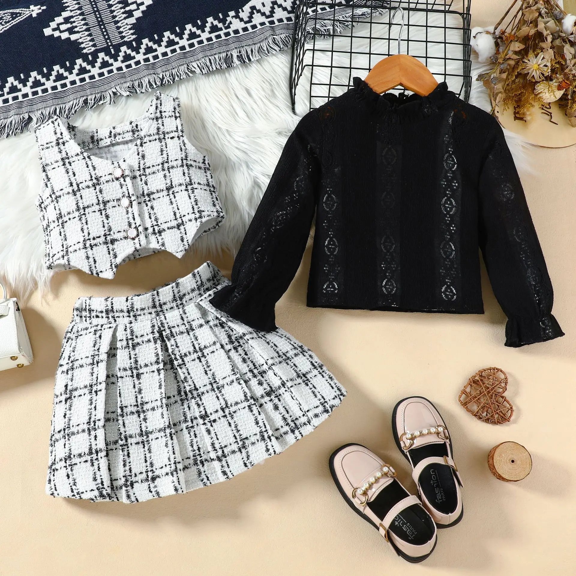 2025 Autumn Girls Clothing Sets Winter Kids Wholesale Lace Top Plaid Skirt 3Pcs Dress Set Children’s Clothing for Girls