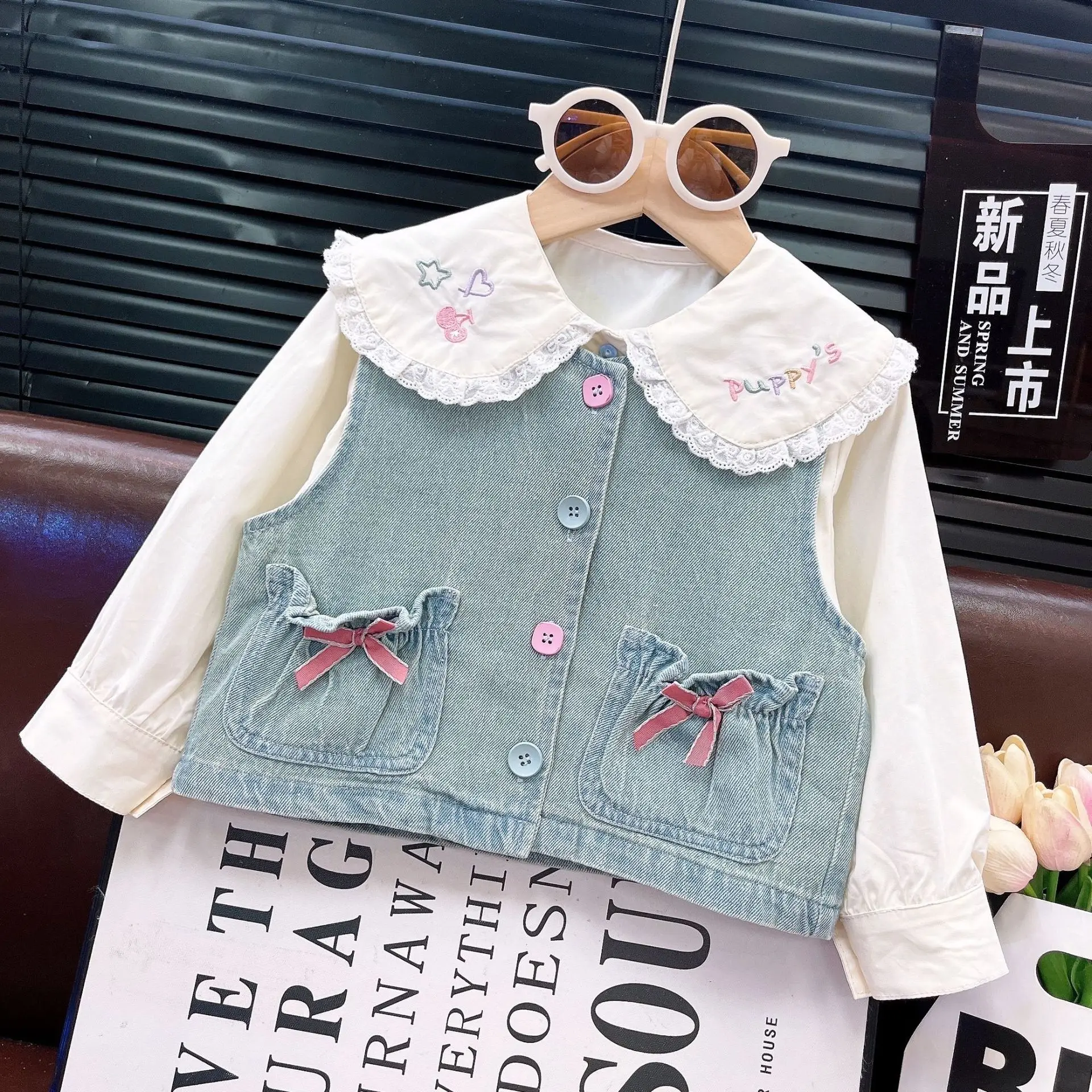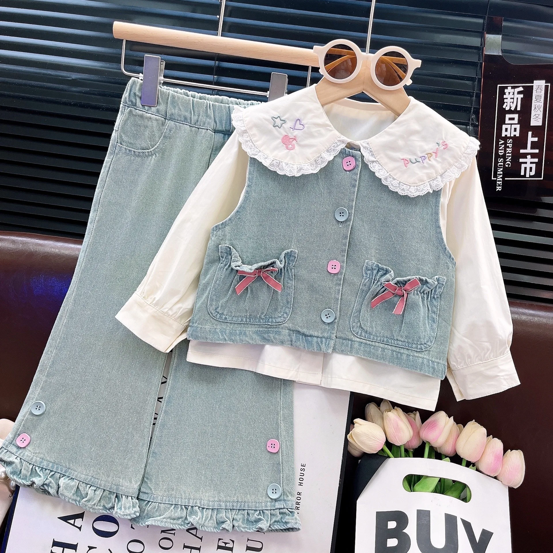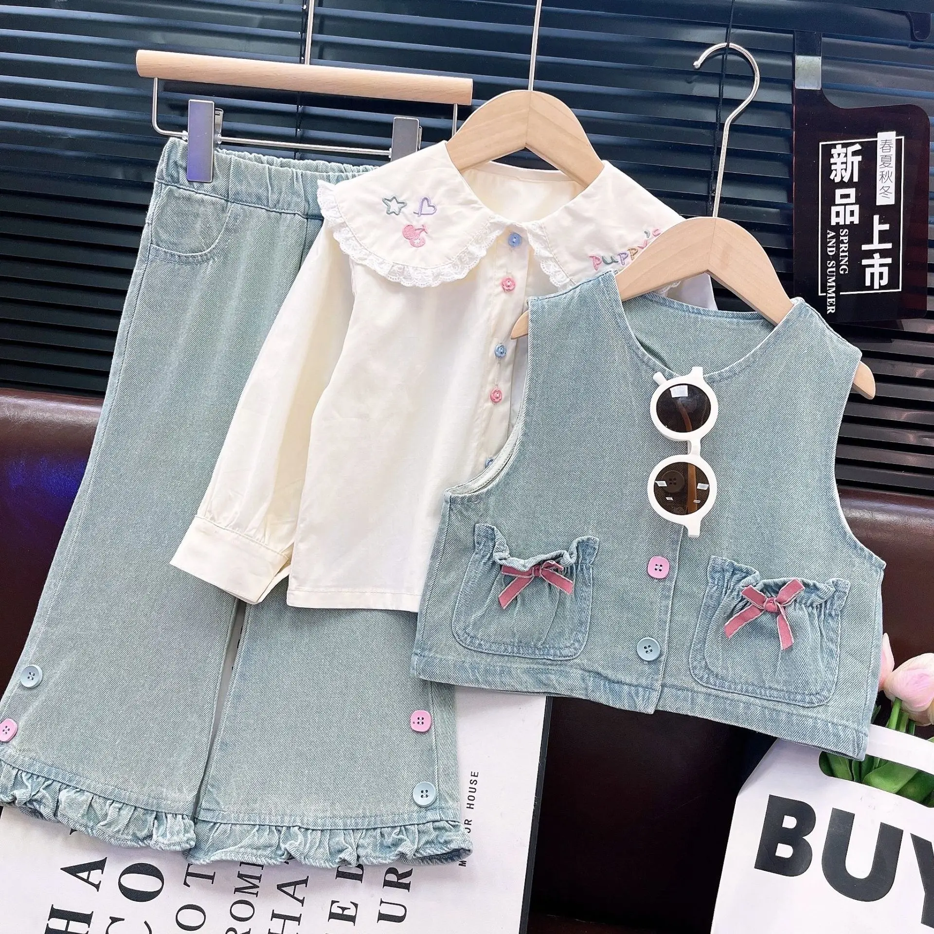 2025 Autumn Hight Quality Long Sleeve Solid Jacket Wide-leg Pants 3Pcs Teenage Clothes for Girls From 3 to 7 Years