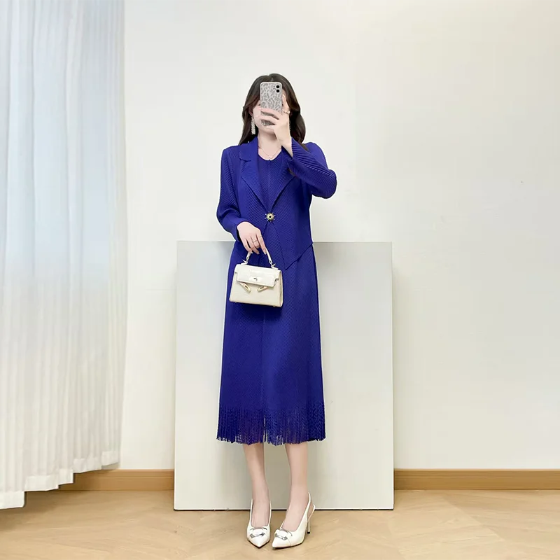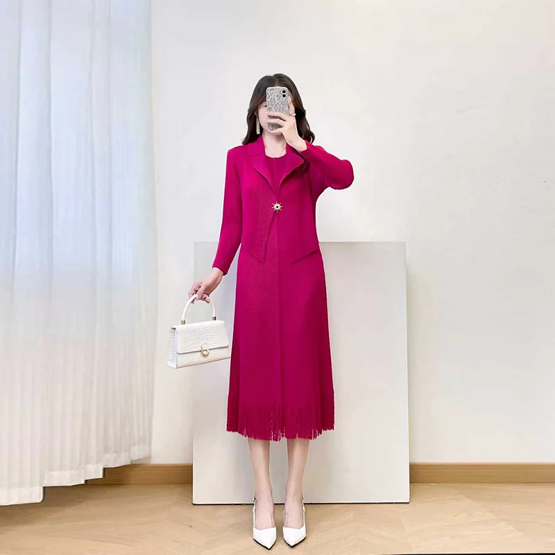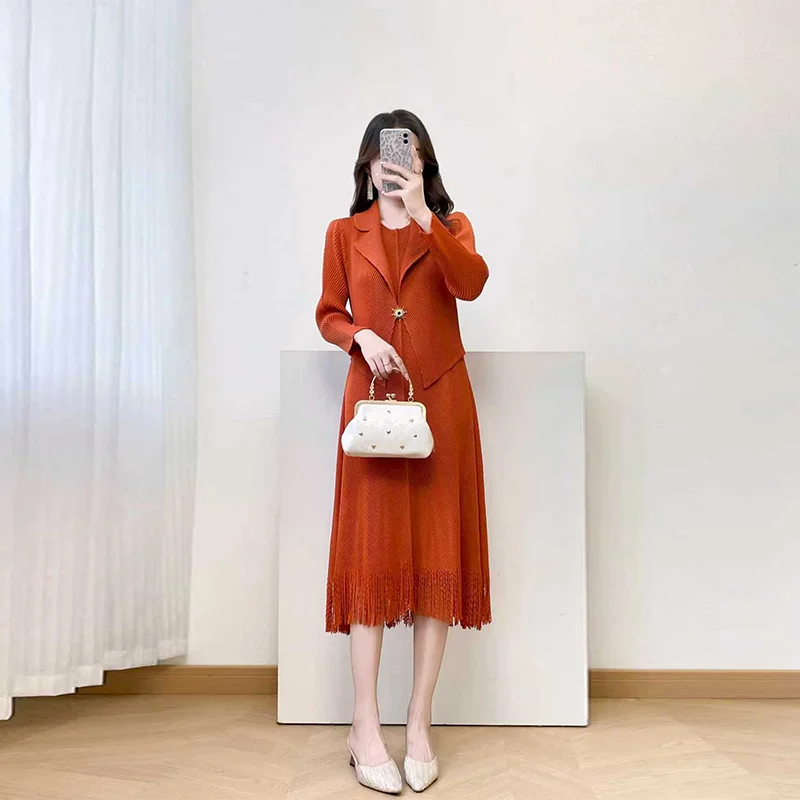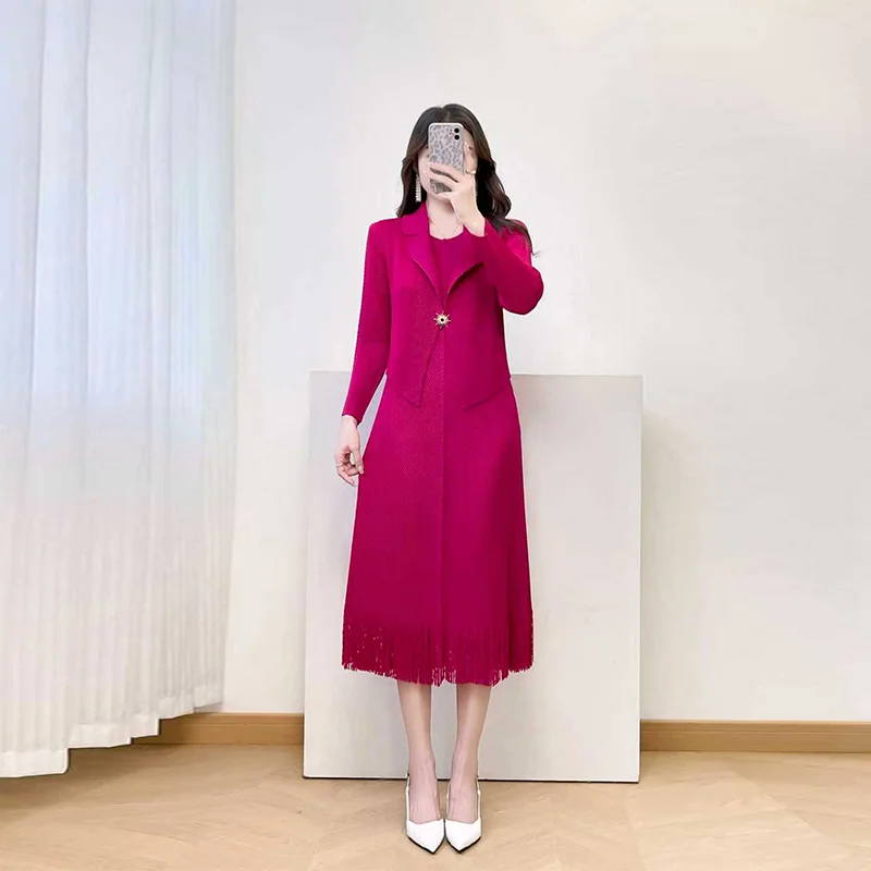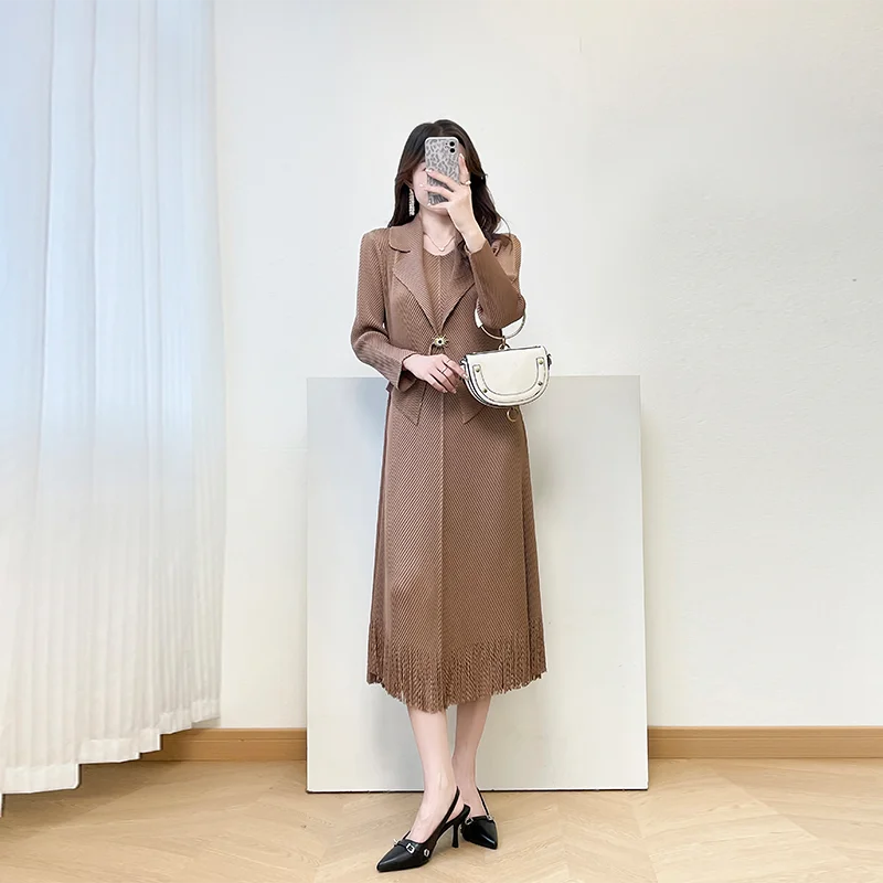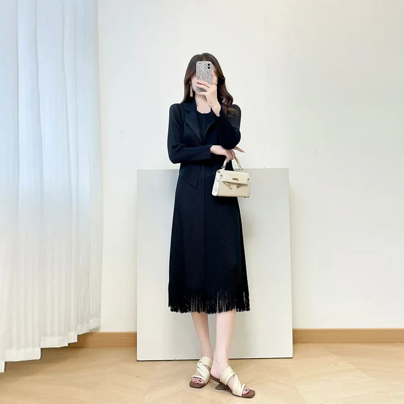 2025 Autumn New Fashion Elegant Fringed Lapel Long Sleeve Casual Loose Waist Breathable Midi Length Women’s Dress
