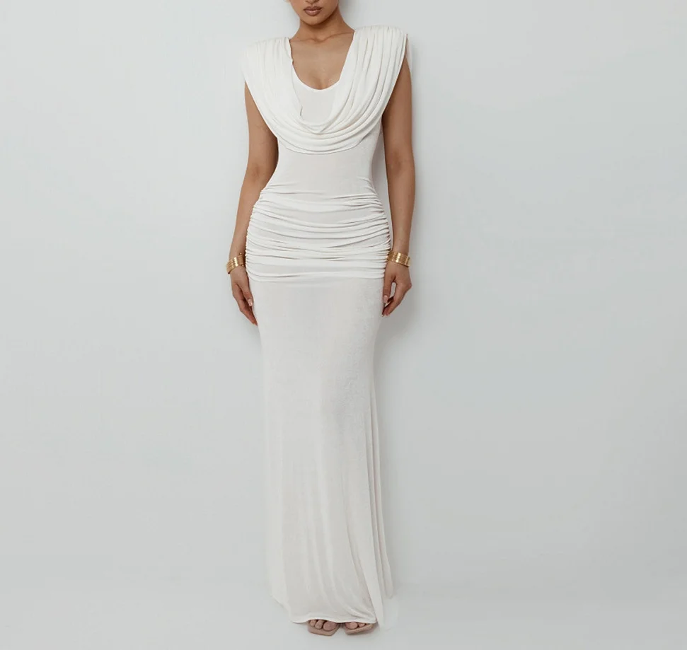 2025 Autumn New Women’s Clothing Solid Color Temperament Elegant Pleated Collar Slim Fit Dress for Women