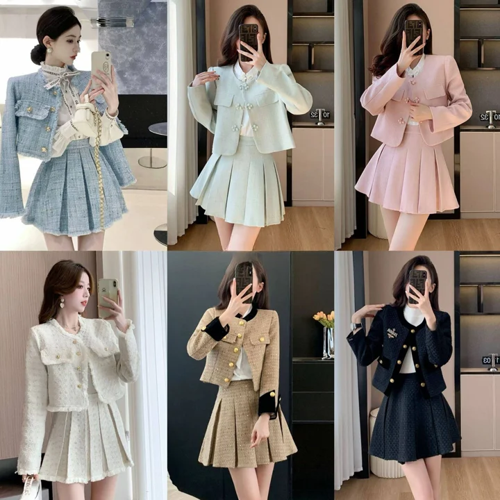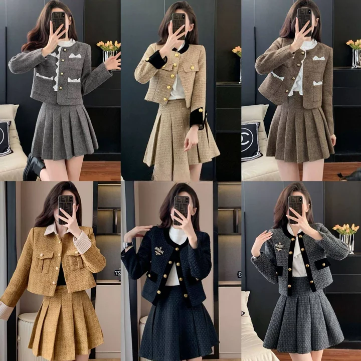 2025 Autumn Sweet 2-Piece Women’s Clothing Set Embroidered Short Top Mini Dress Bow Collar Hot Selling Fall Collection Wholesale