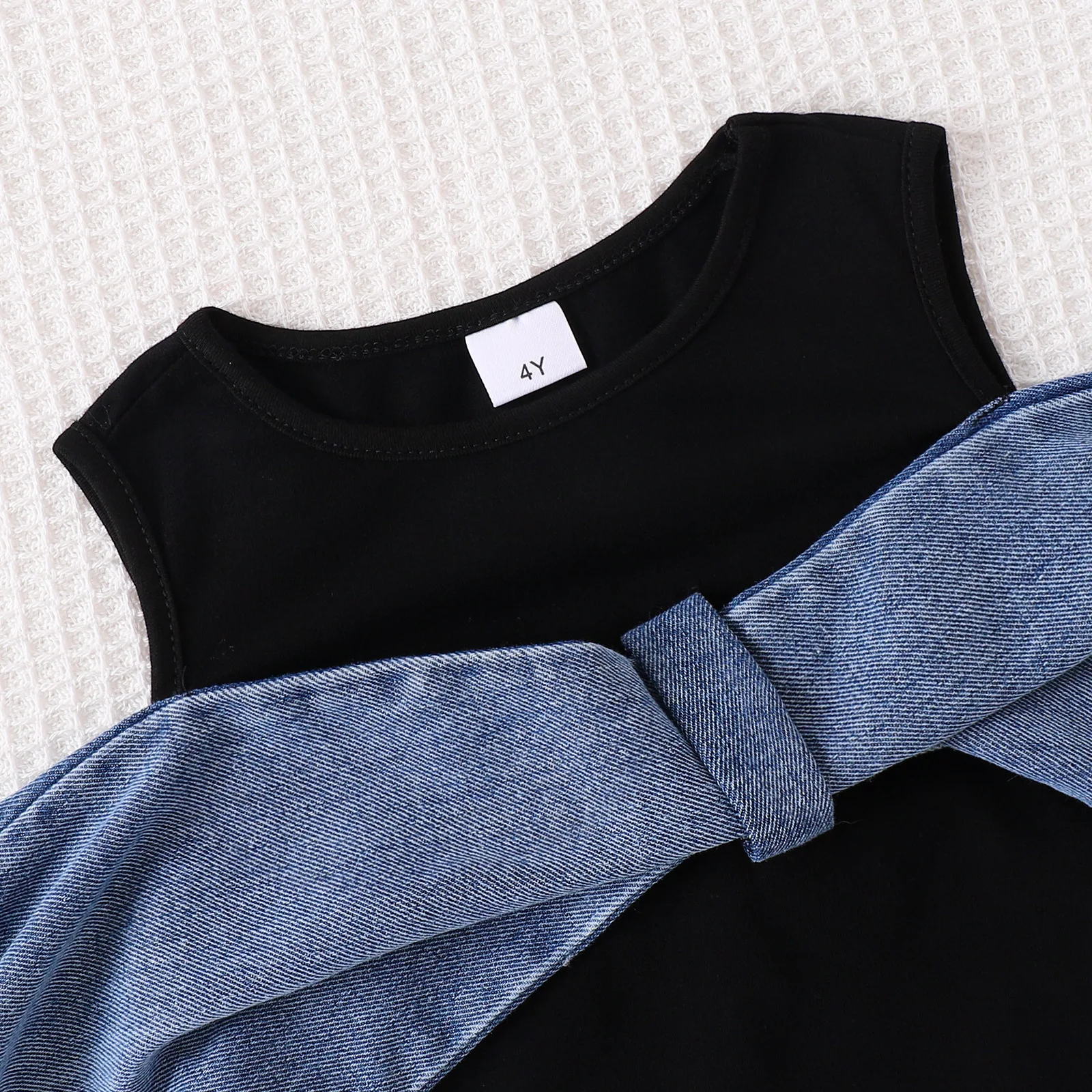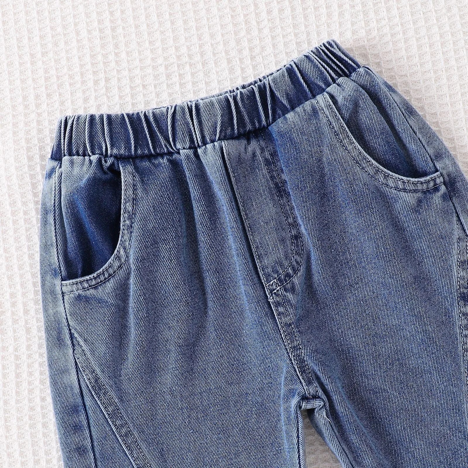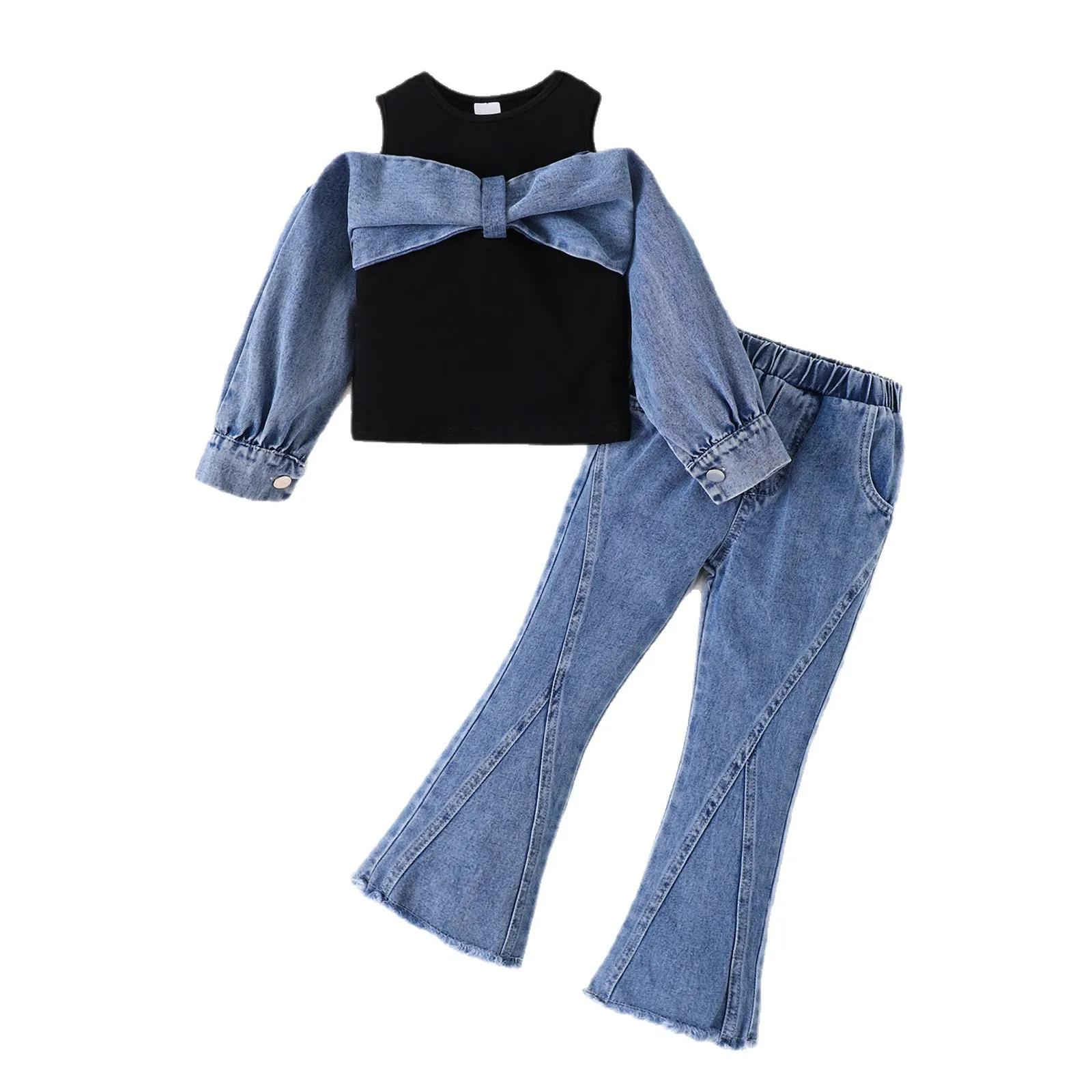 2025 Autumn Winter Casual 2pcs Clothing Set for Girls Long Sleeve Denim Patchwork Top Flare Jeans Solid Pattern Shoulder Design