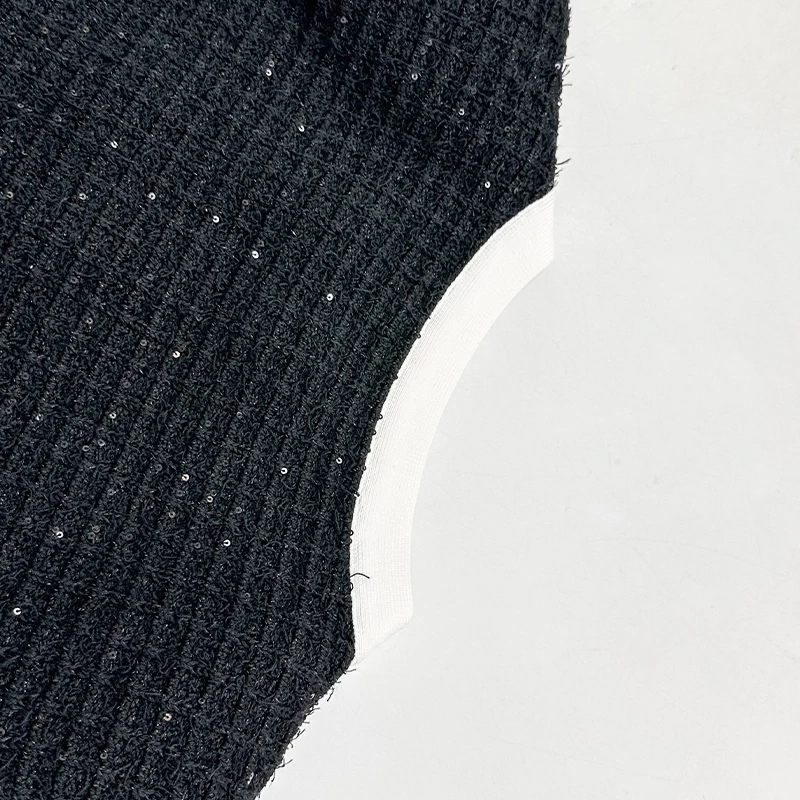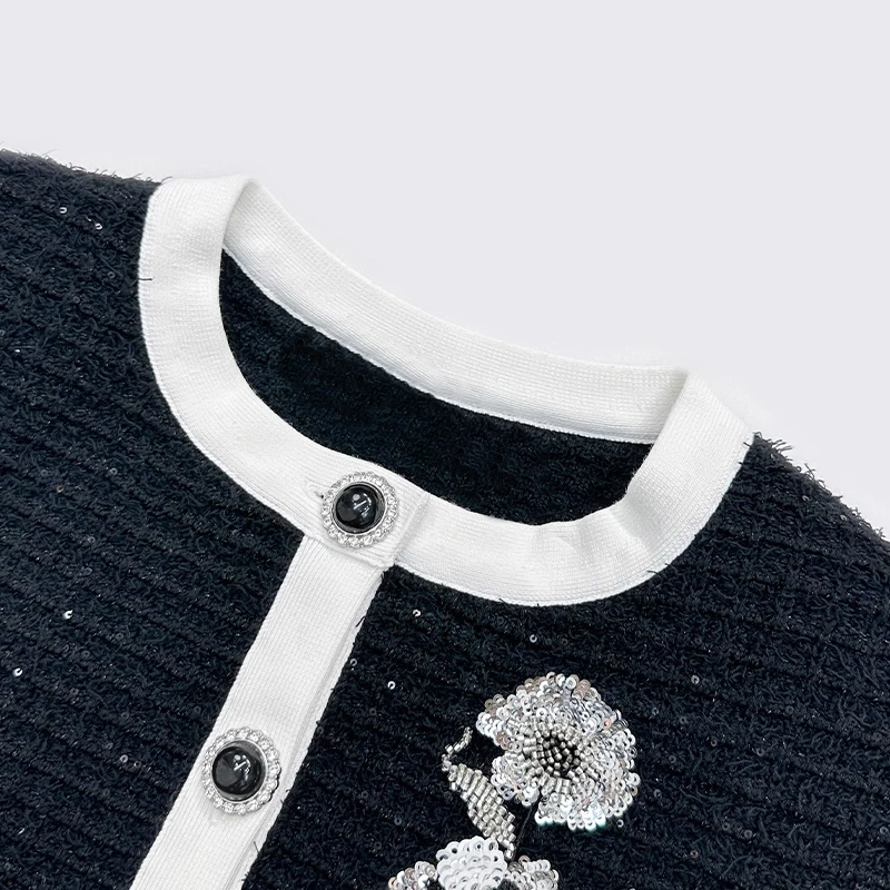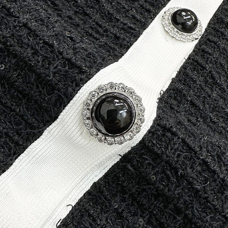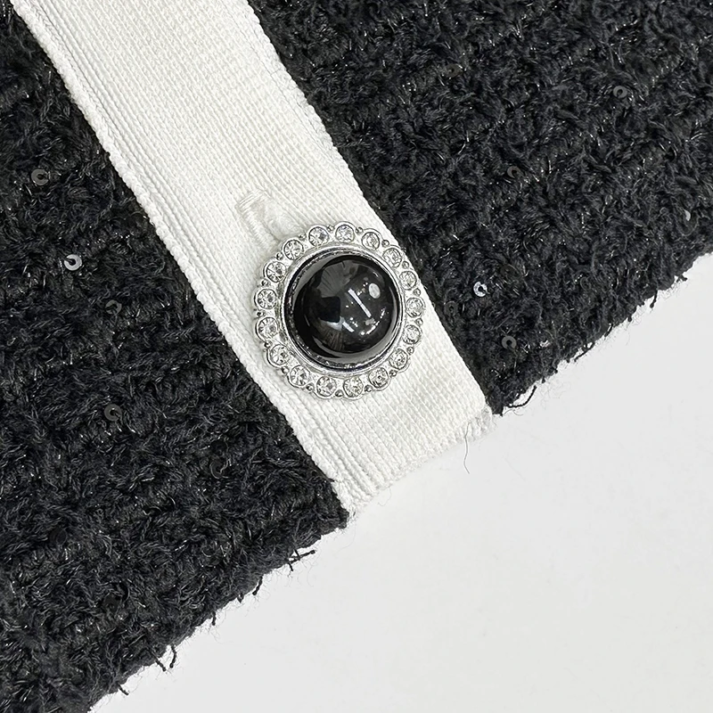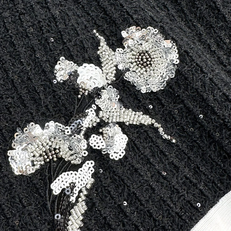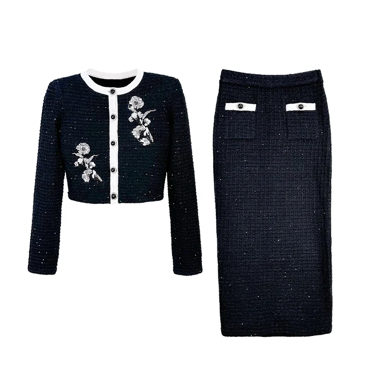 2025 Autumn/Winter Classic Black Gold Style Heavy Industry Embroidered Glitter Knitted Short Coat Half Skirt Set