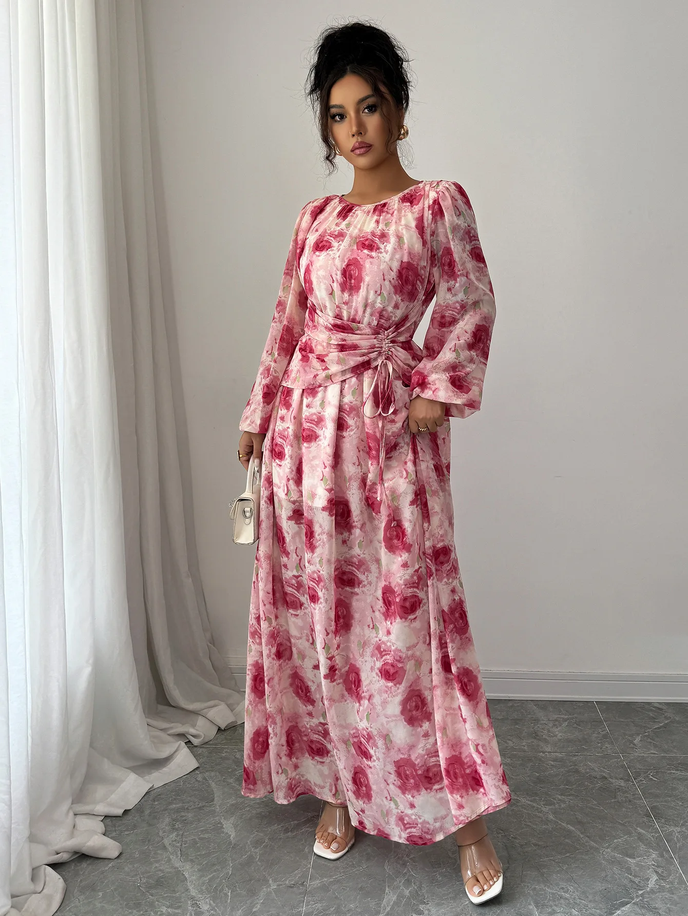 2025 Autumn Winter Independent Station Women’s Casual Dresses Elegant Temperament Wind Printed Long Sleeve