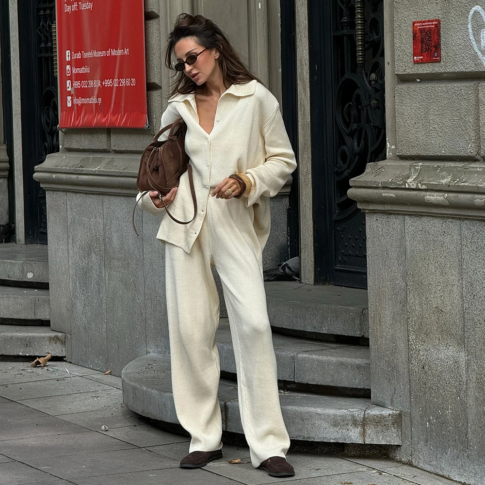 2025 Autumn Winter Leisure Long Sleeve Knitted Commuter Suit Lapel Button Breathable Loose Fit for Europe United States