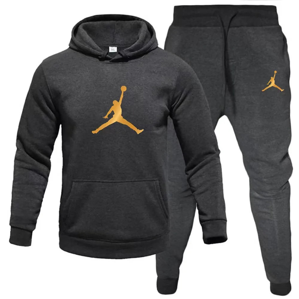 2025 Autumn/Winter Wholesale Men’s Sports Casual Sports Brand Set Customizable Logo Printed Hoodie and Warm Pants