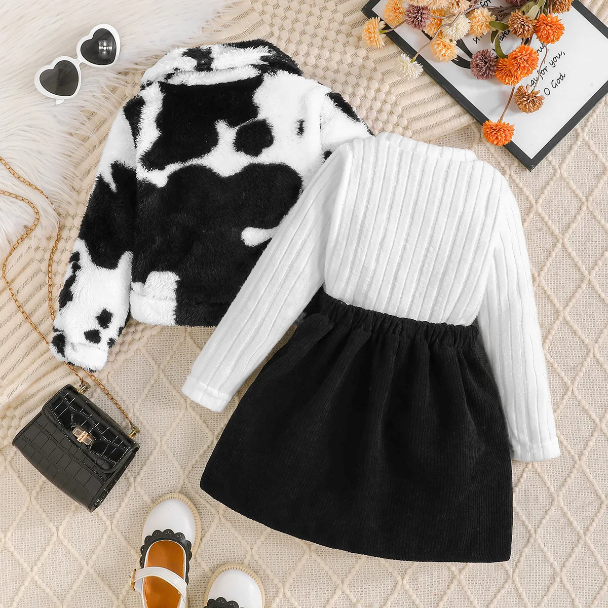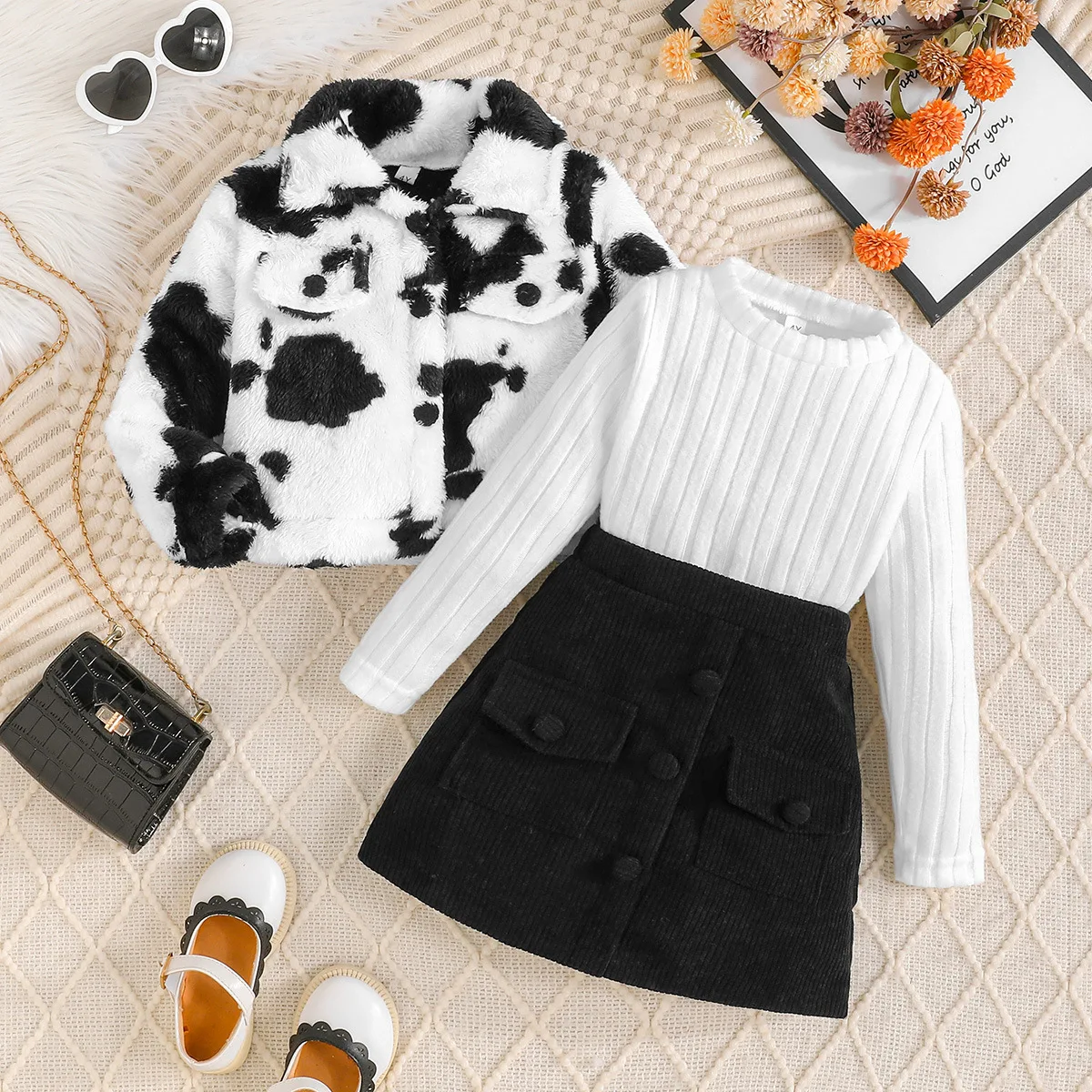 2025 Children New Autumn Girls Wear Fashion Clothing Fur Coat Solid-color Knitted T-shirt Mini Skirt 3pcs Kids Clothes Wholesale