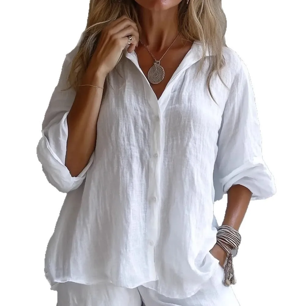 2025 European and American Women’s Clothing Spring Hot-Selling Solid Color V-Neck Long-Sleeved Casual Shirt