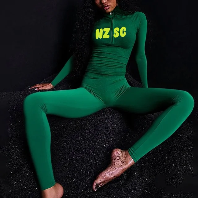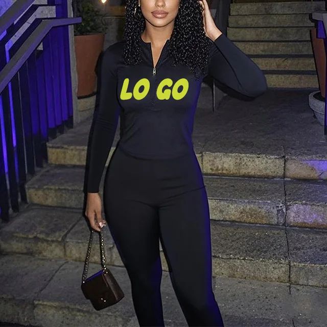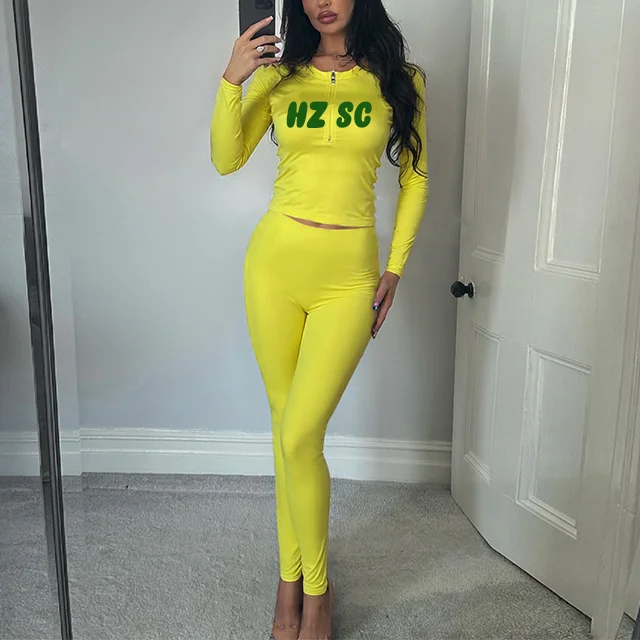 2025 Fall New Women’s Fashion Sportswear Elegant Casual Print Long Sleeve Top Stand Collar Zipper Skinny Trousers 2-Piece Set