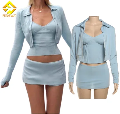 2025 Fall Y2K 3-Piece Set, Adjustable Sling Top with Lapel Jacket and Skort, Casual Sexy Outfit
