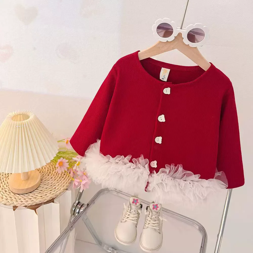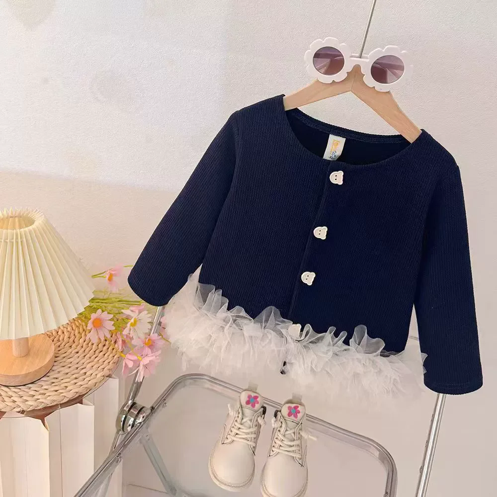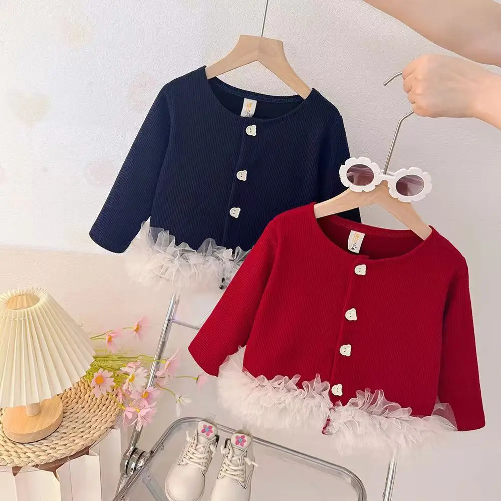 2025 Girls Autumn New Niche Design Knitted Sweater Puffy Girls Jacket Autumn Cardigan Top Factory Wholesale