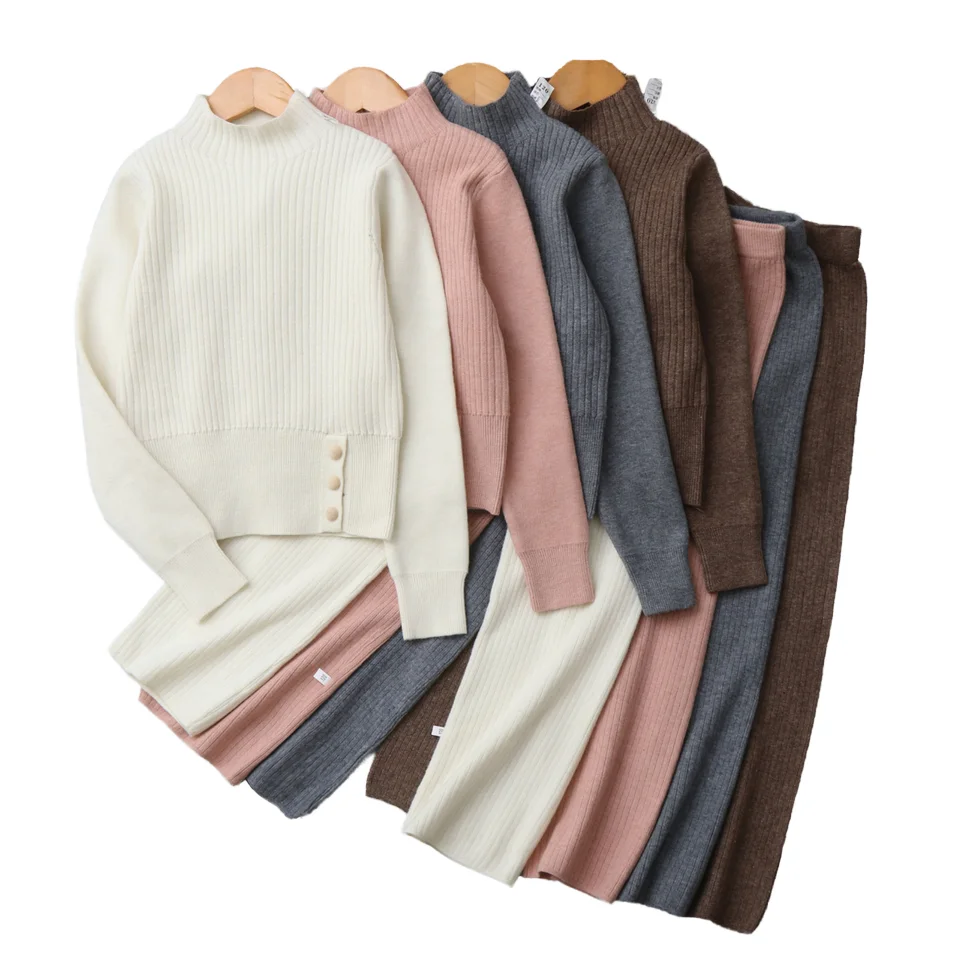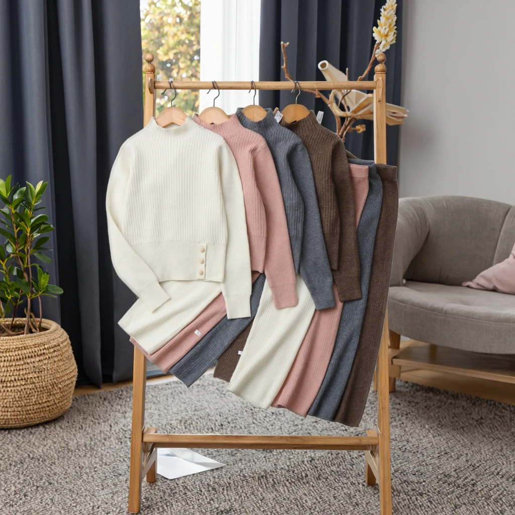 2025 New Style 2pcs Solid Color Casual Boutique Knitted Suits for Teenage Girls Autumn Winter Children’s Clothes Sets