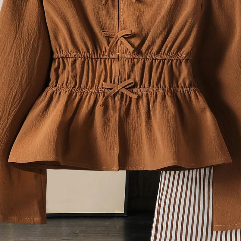 2025 Spring Autumn Girls Clothes Pullover Ruffled Sleeves Bow Top Wide-leg Striped Pants Teenager Suit Kids Designer Clothing