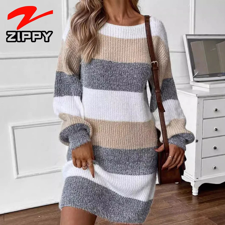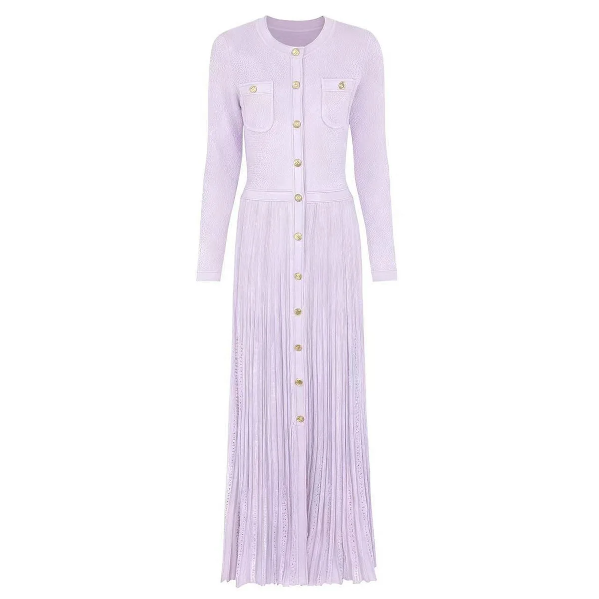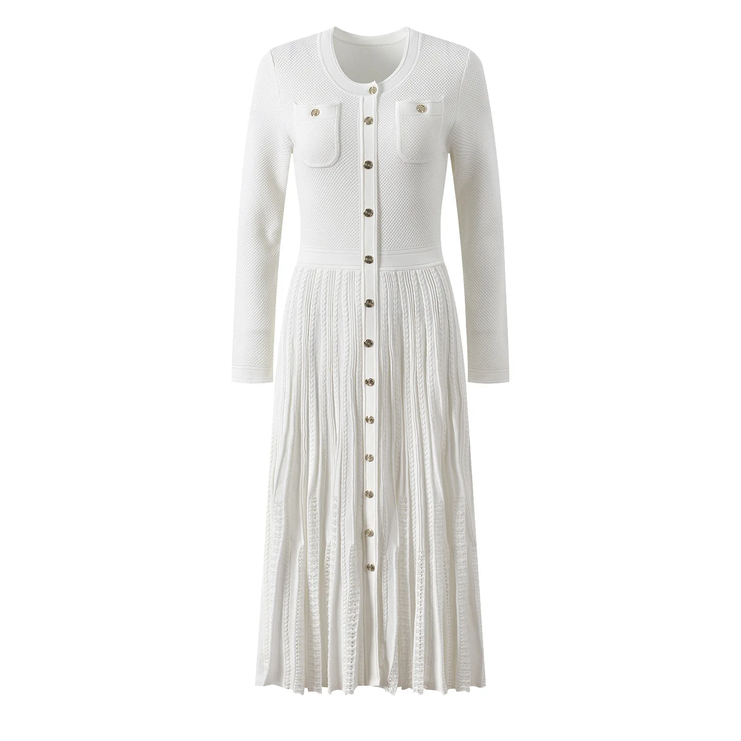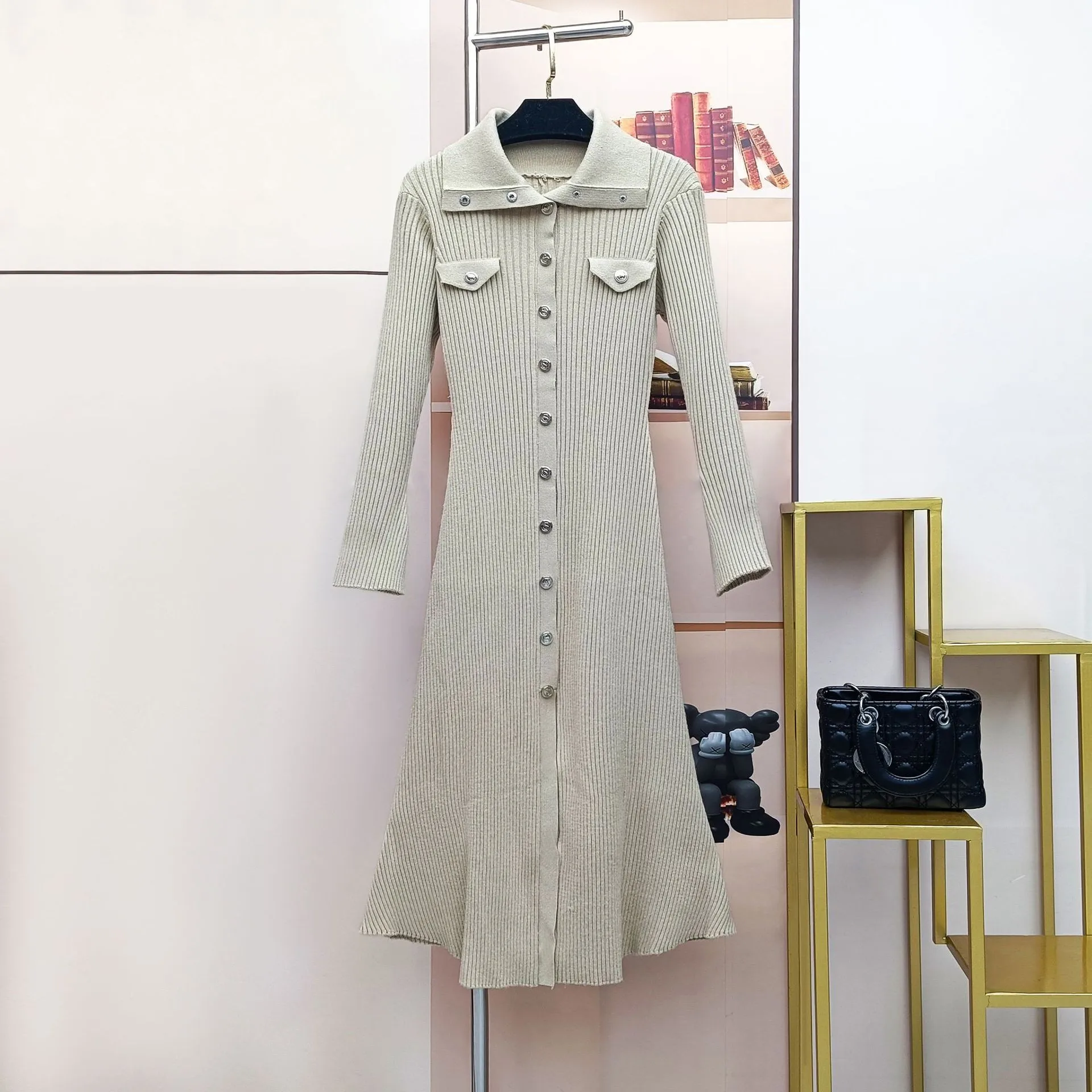 2025 Spring Autumn Winter Casual Elegant High Neck Button Wool with Gold Thread Slim Fit Women’s Knitted Cardigan Dress