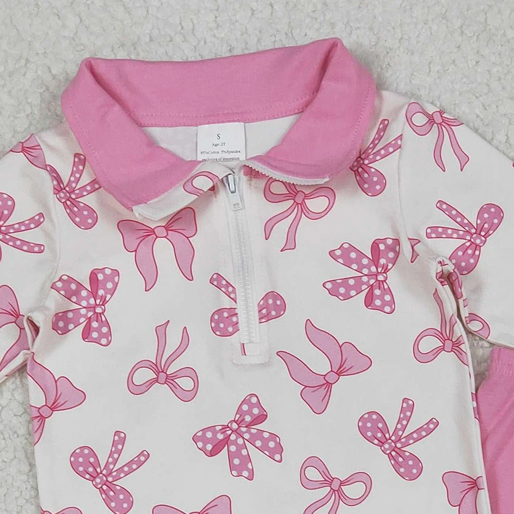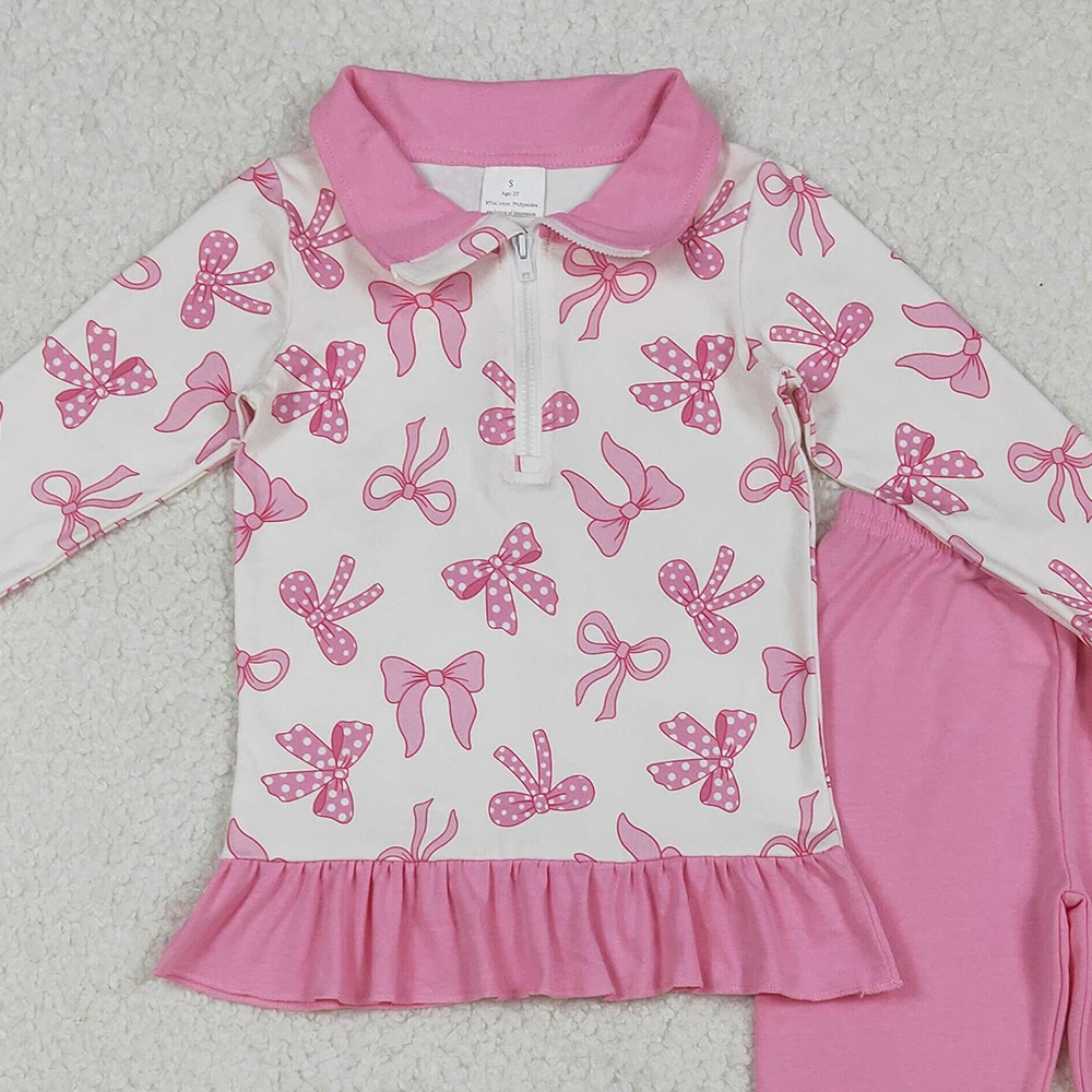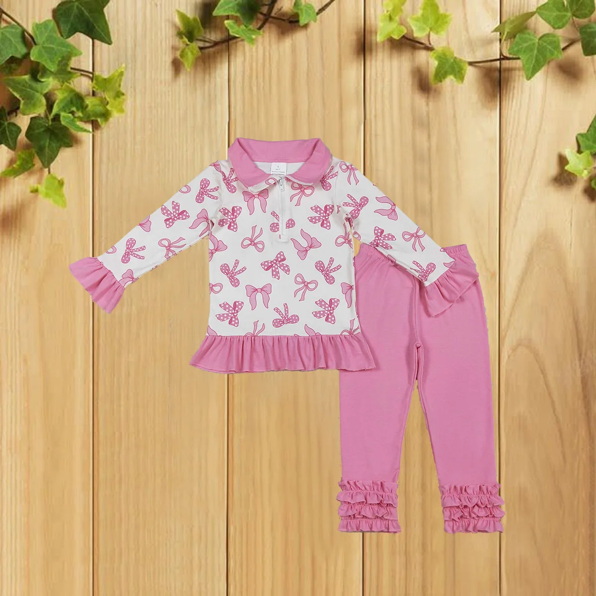 9.26 Ruffle Hem Zipper Long Sleeve Long Pants Girl’s Outfit with Butterfly Knot Pattern Autumn Bestseller Children’s Clothing