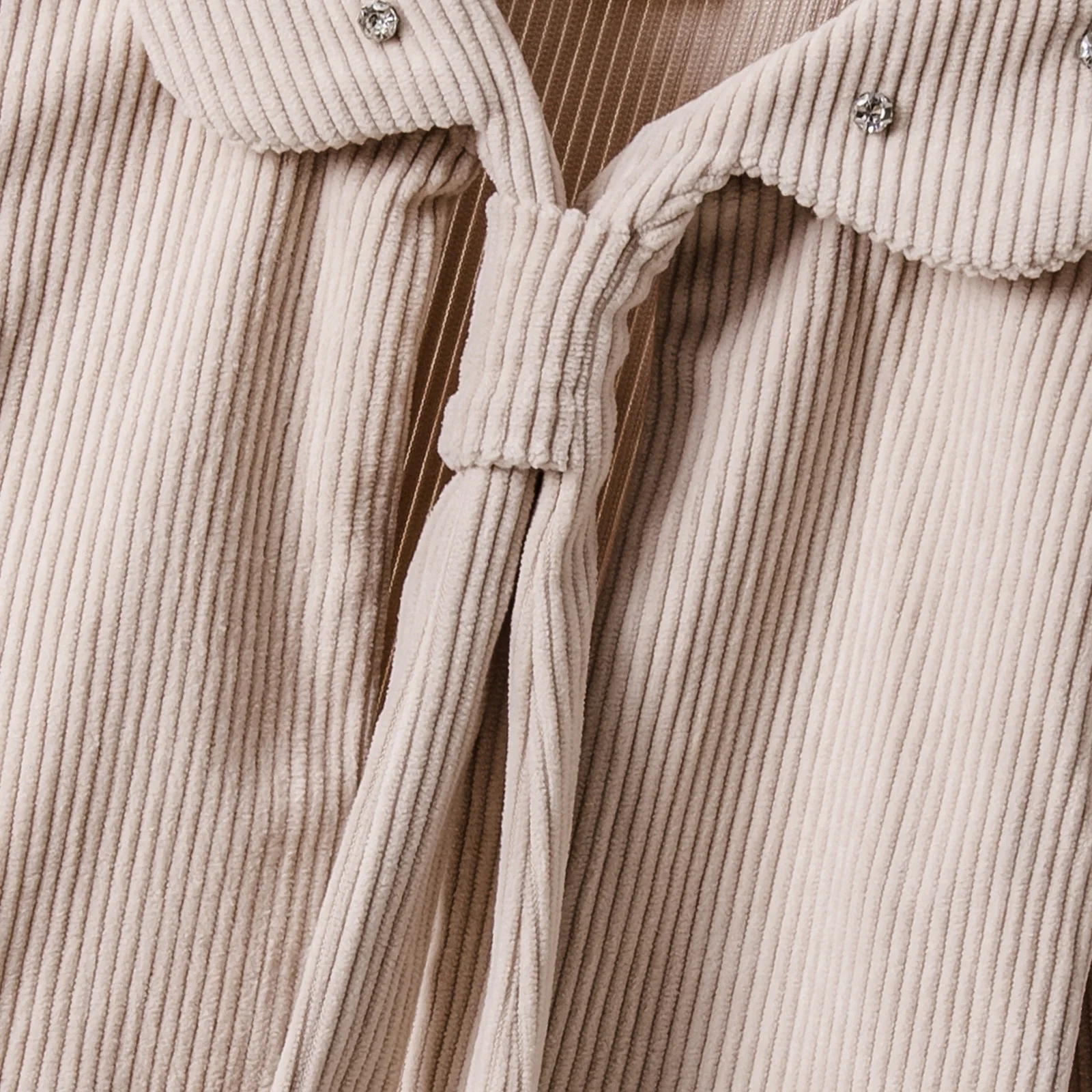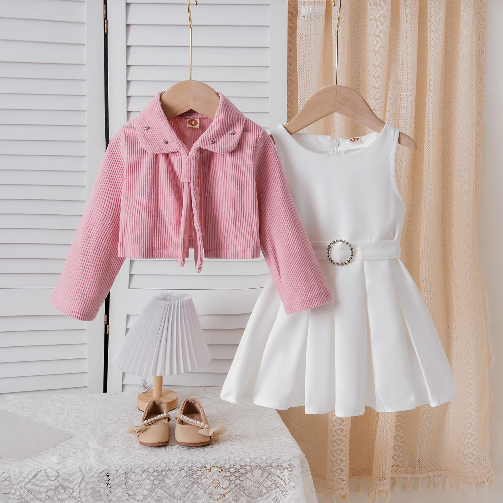 Autumn and Winter Girls Suit Lapel Tie Corduroy Jacket Sleeveless Solid Color Dress Pleated Skirt Children’s Clothing