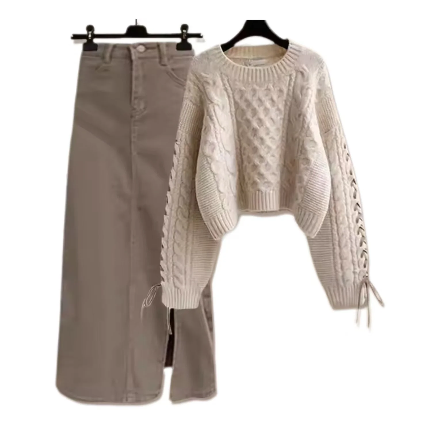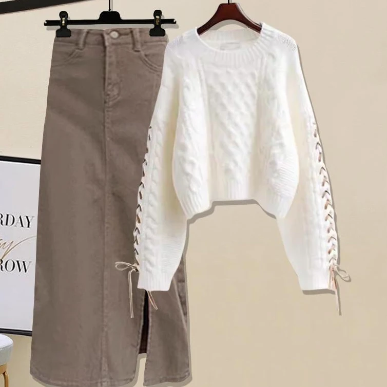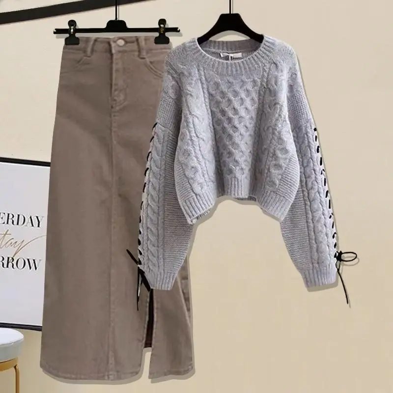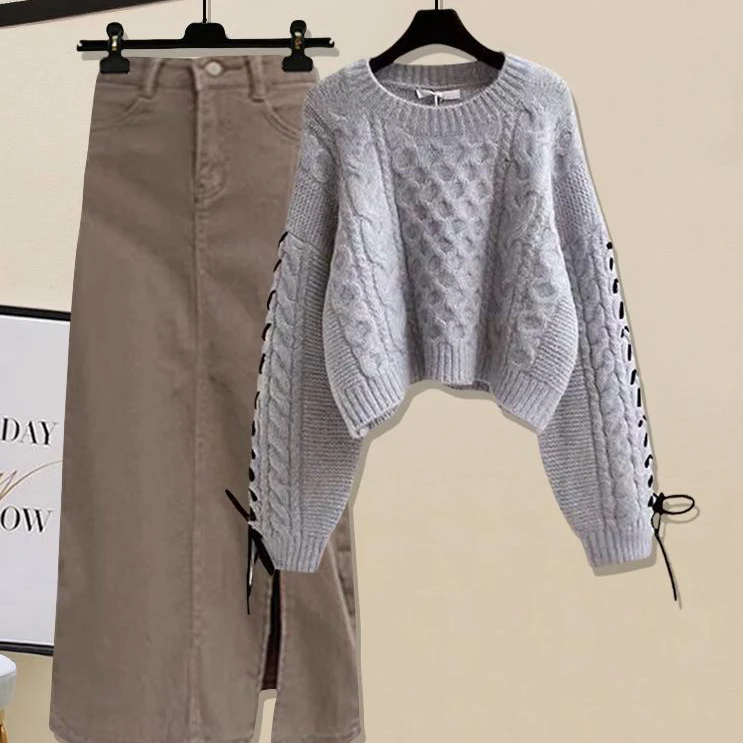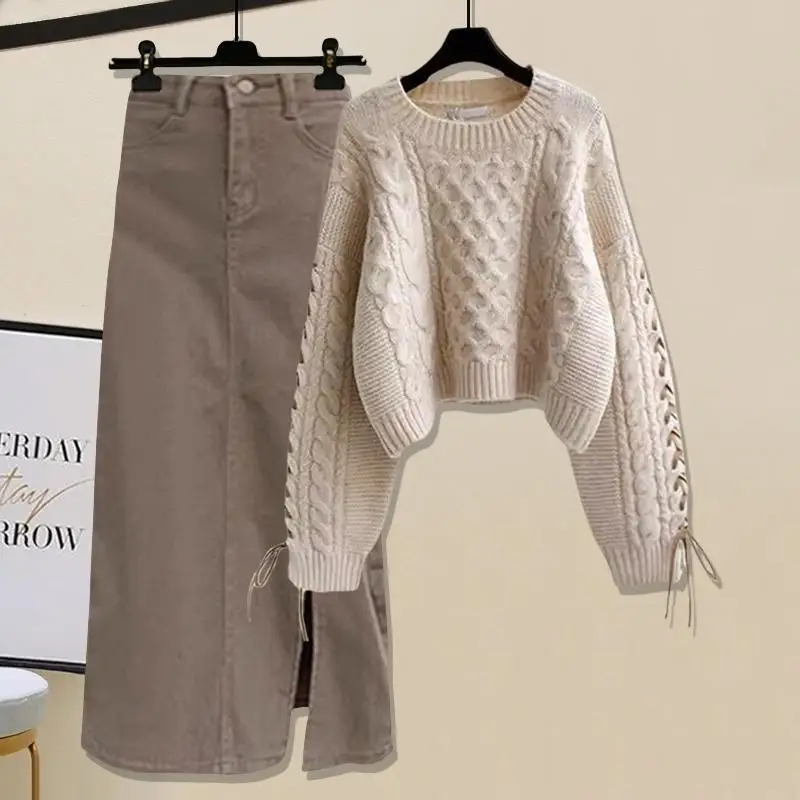 Autumn and Winter Knit Set Solid Color Knit Sweater and Gentle Skirt Knit Two-piece Set for Women
