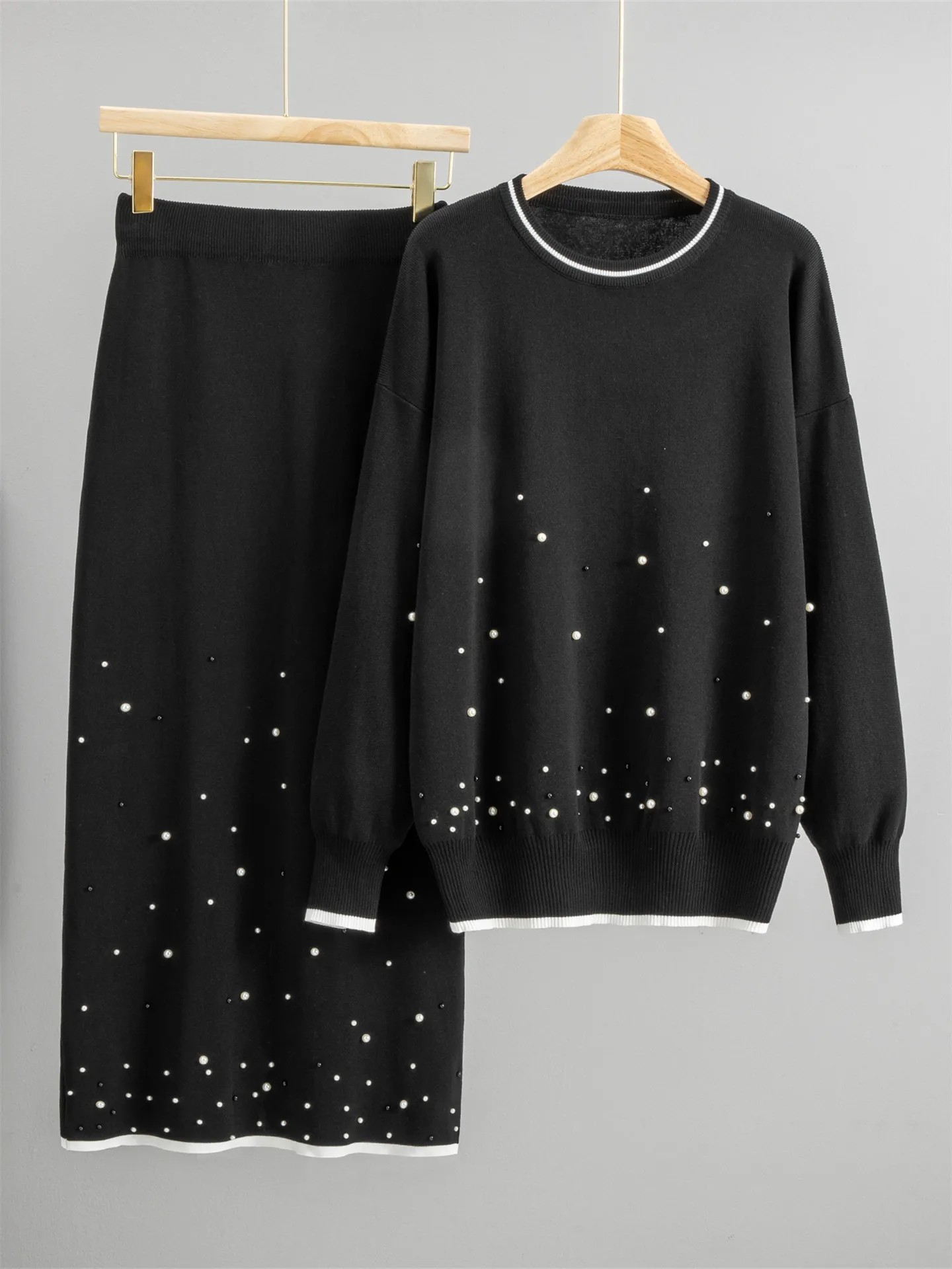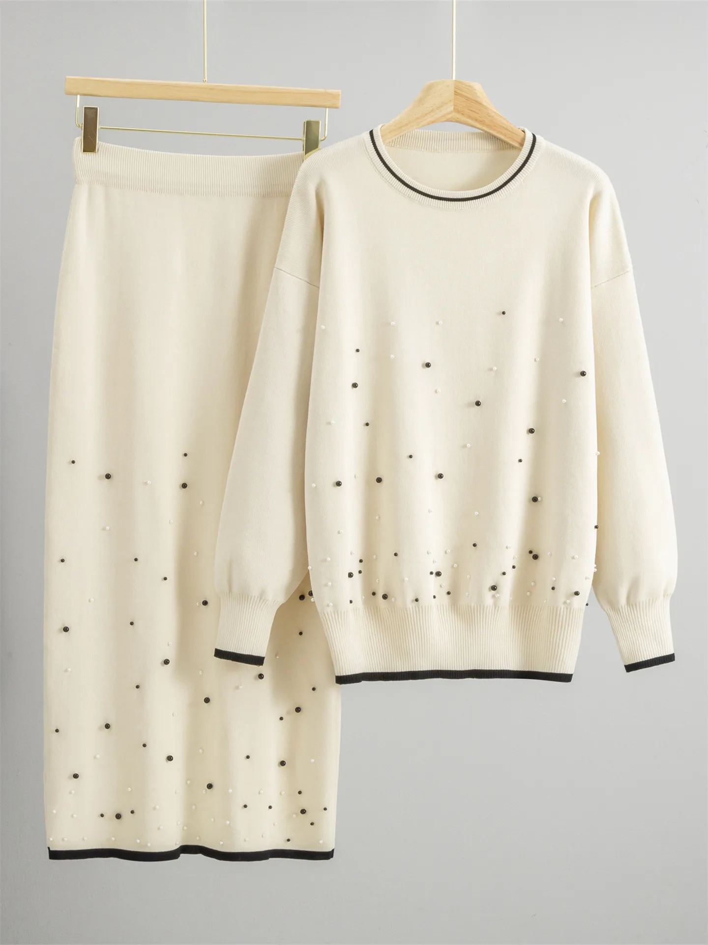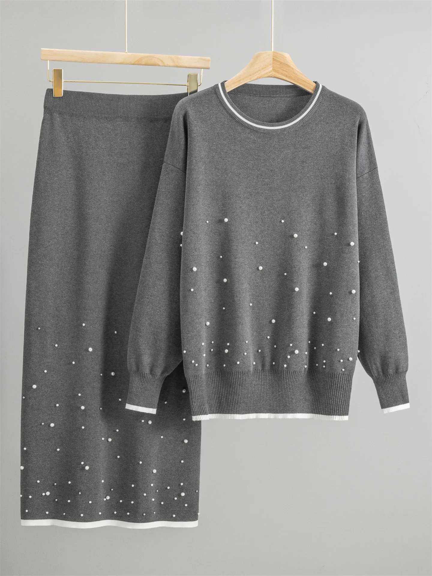 Autumn Casual Anti-Pilling Women’s Sweater Set Knitted Loose Fit Two-Piece Skirt and Sweater in Stylish Design Sens