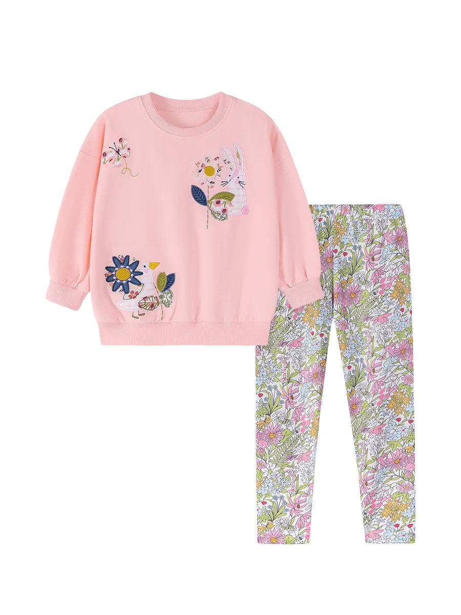 Autumn Casual Children’s Clothing European and American Girls Set Floral Pattern Baby Outfit Wholesale