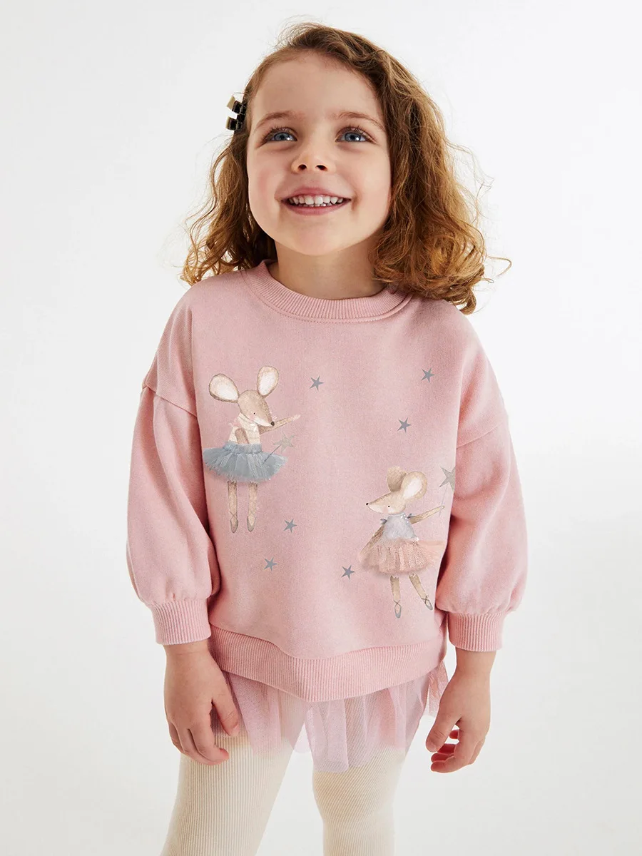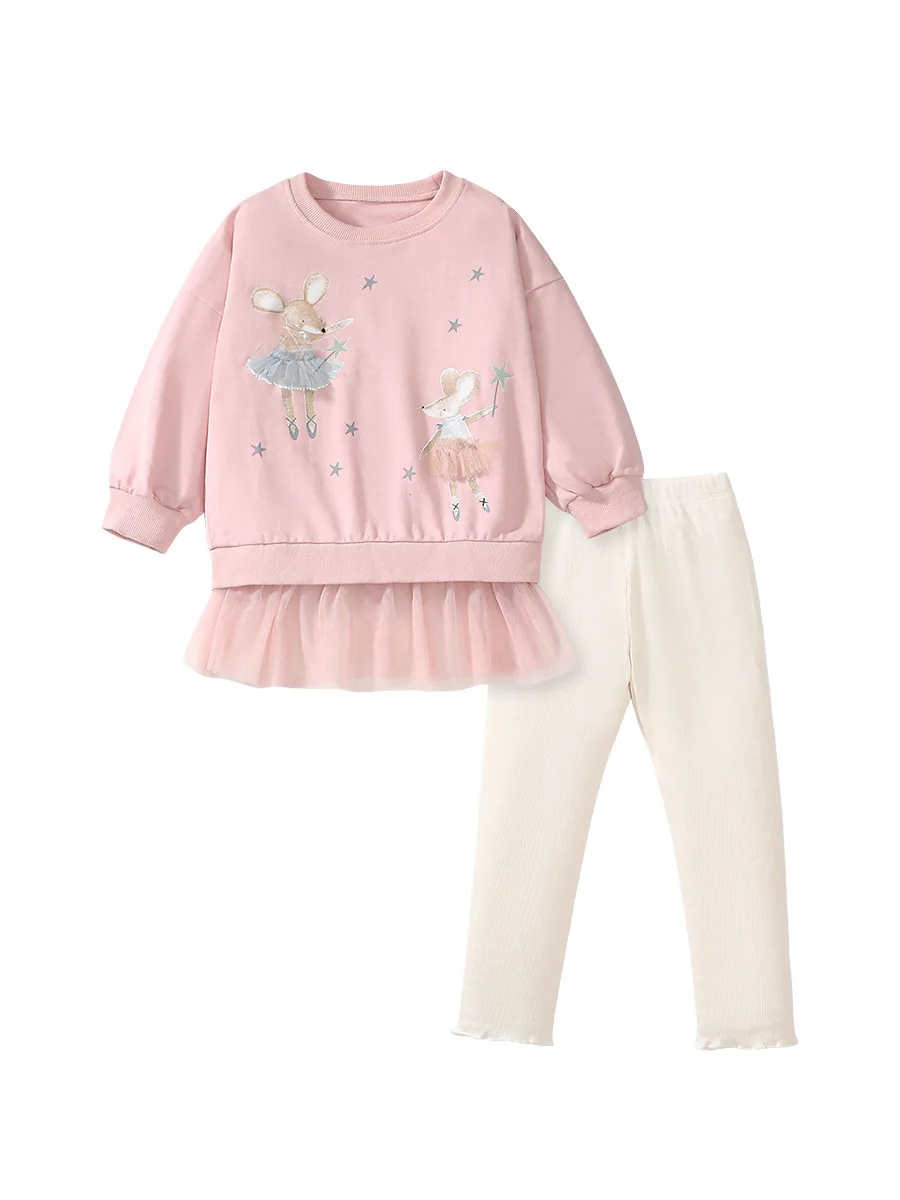 Autumn Casual Girls Clothing Sets Long Sleeve Suit with Breathable Mesh Design Cute Cartoon Pattern Made From Worsted Fabric