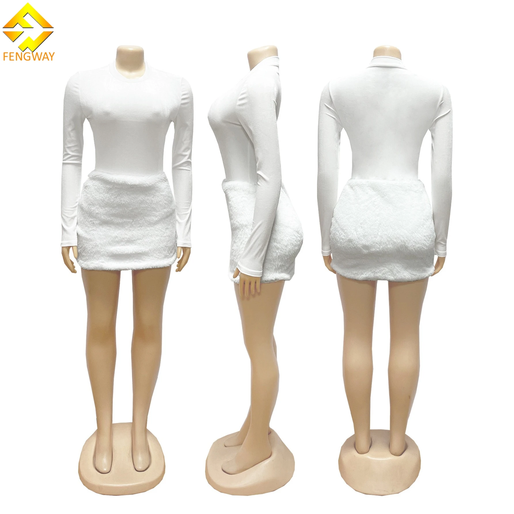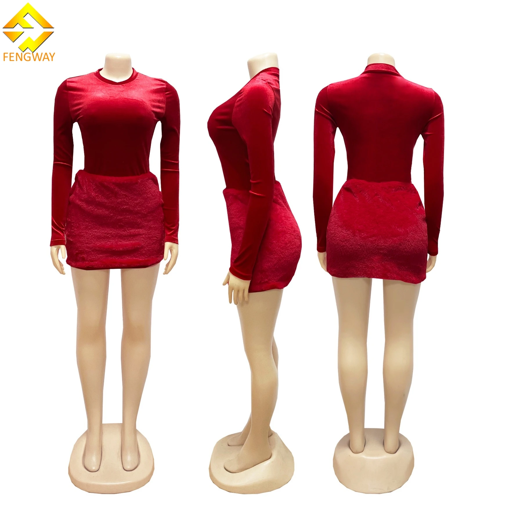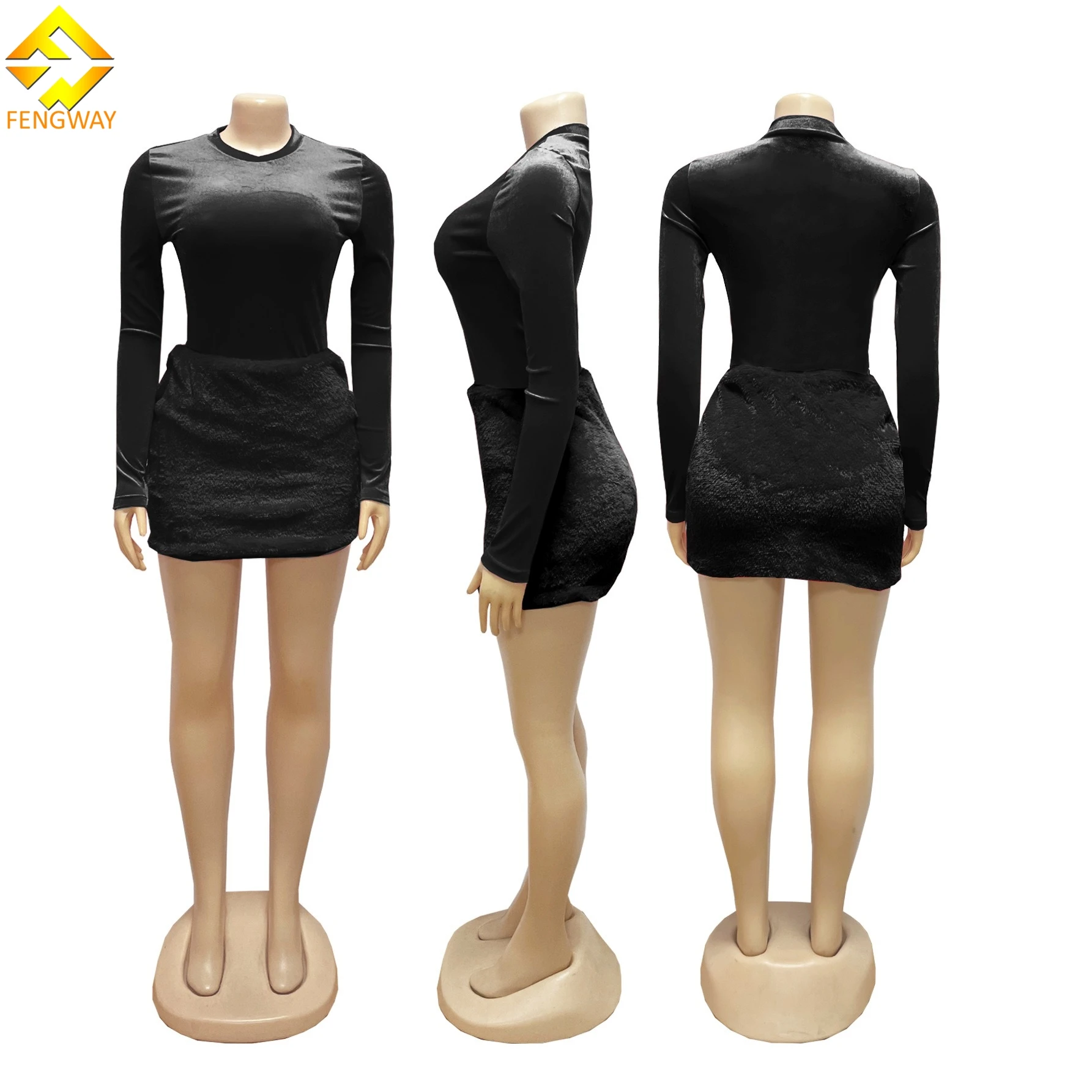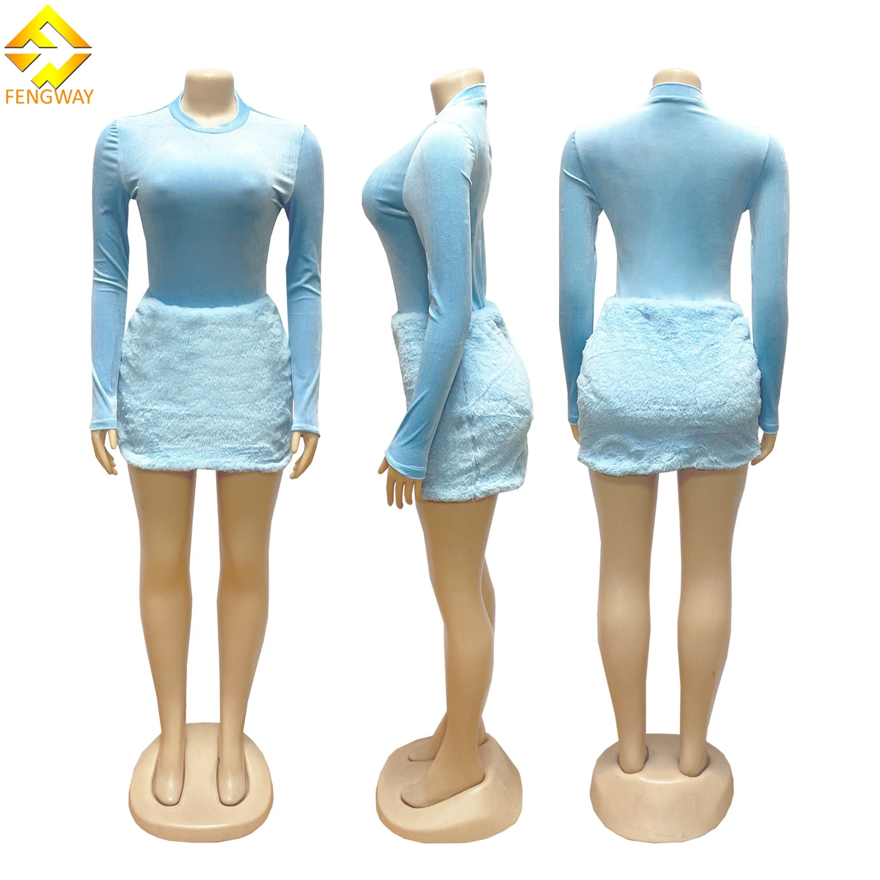 Autumn Custom Women’s Set Long Sleeve Bodysuit With Skirt Set Velvet Dresses for Women Clothing Sexy Fall Furry Velour Skirt Set