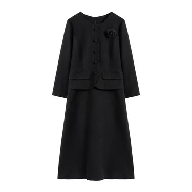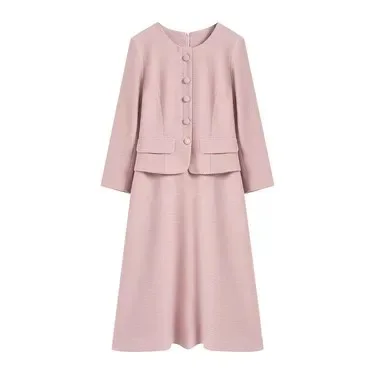 Autumn Fashion Elegant Elegant Style Two-Piece Casual Dress Woven Worsted Fabric Solid Pattern Natural Floor-Length Size 5XL