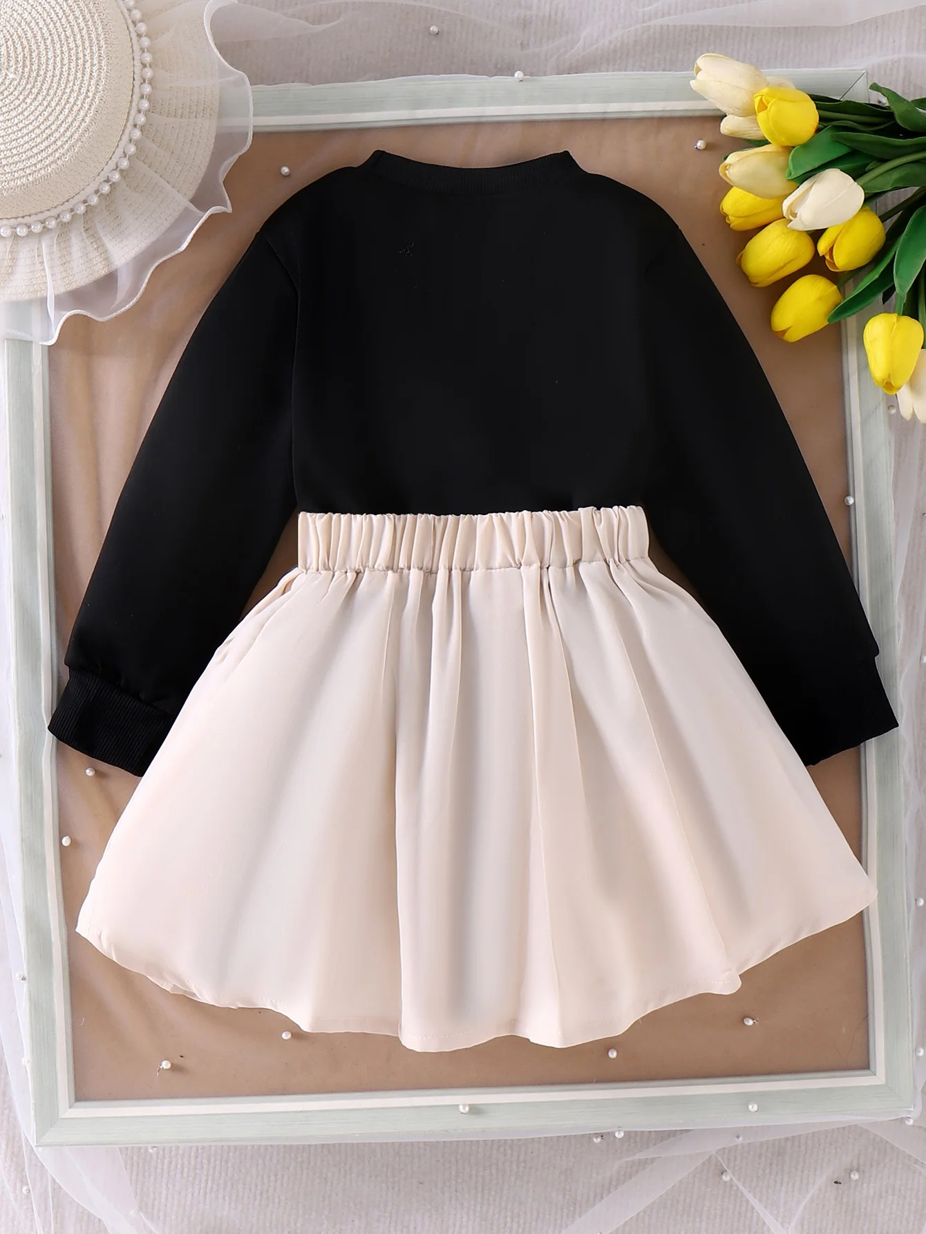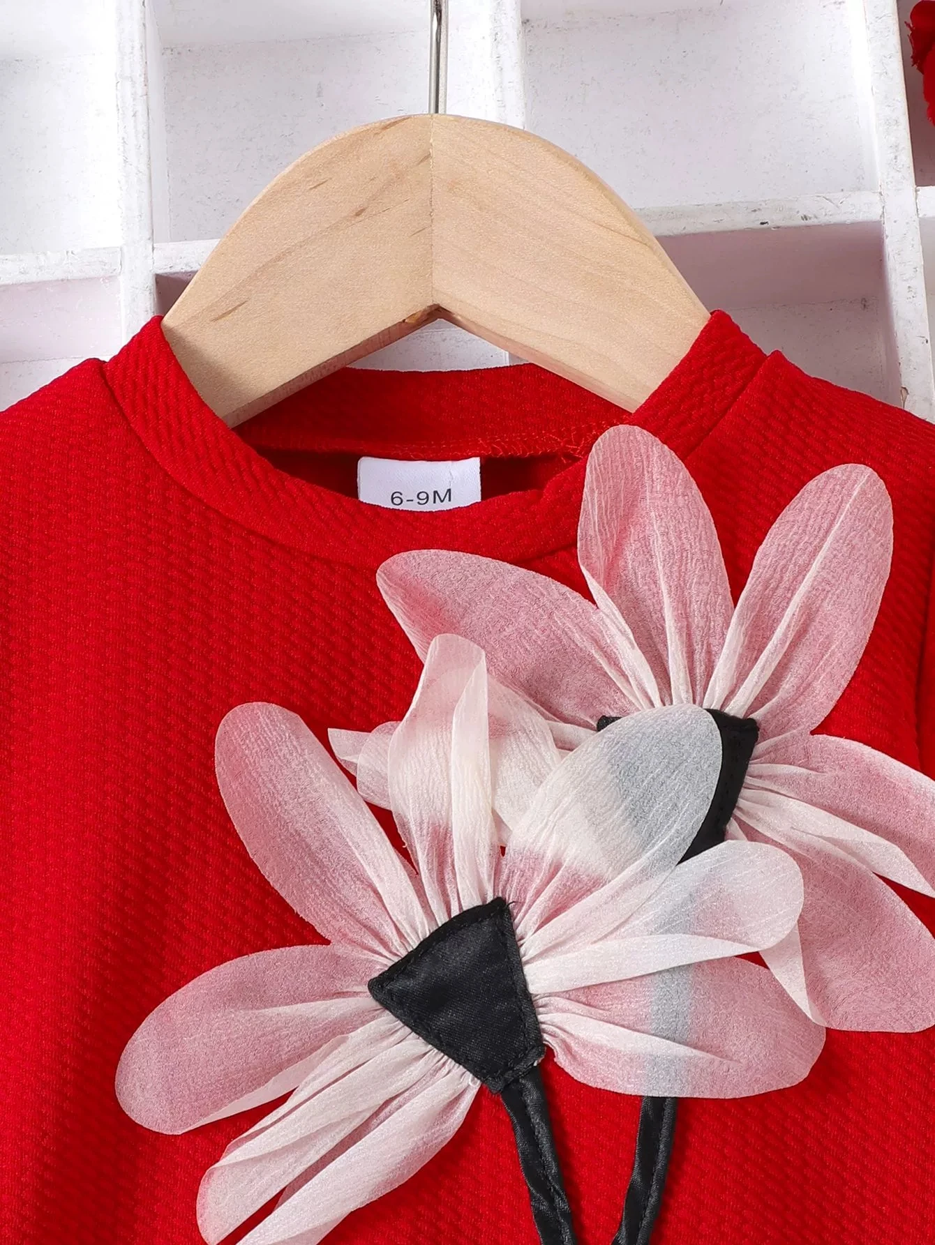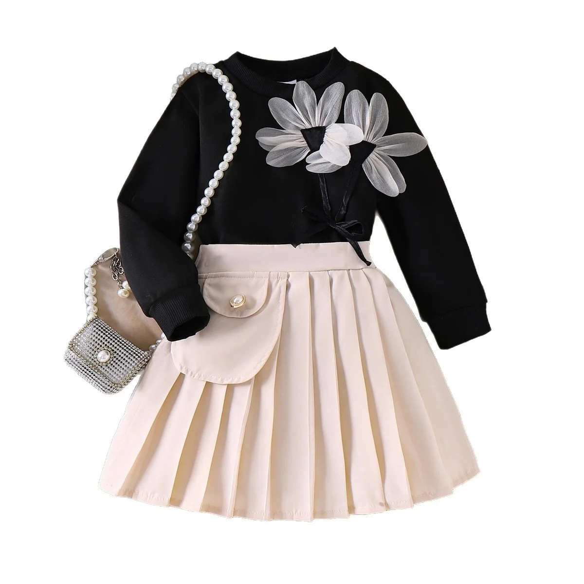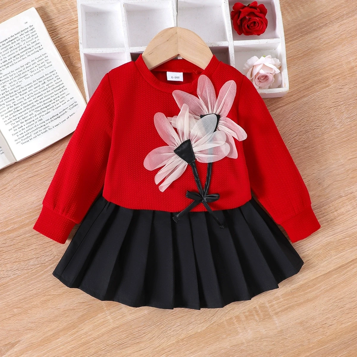 Autumn New Girl Suits Flower Long Sleeved Top+pleated Skirt Two-piece Children’s Suit 3Y Frock Suits for Baby Girl
