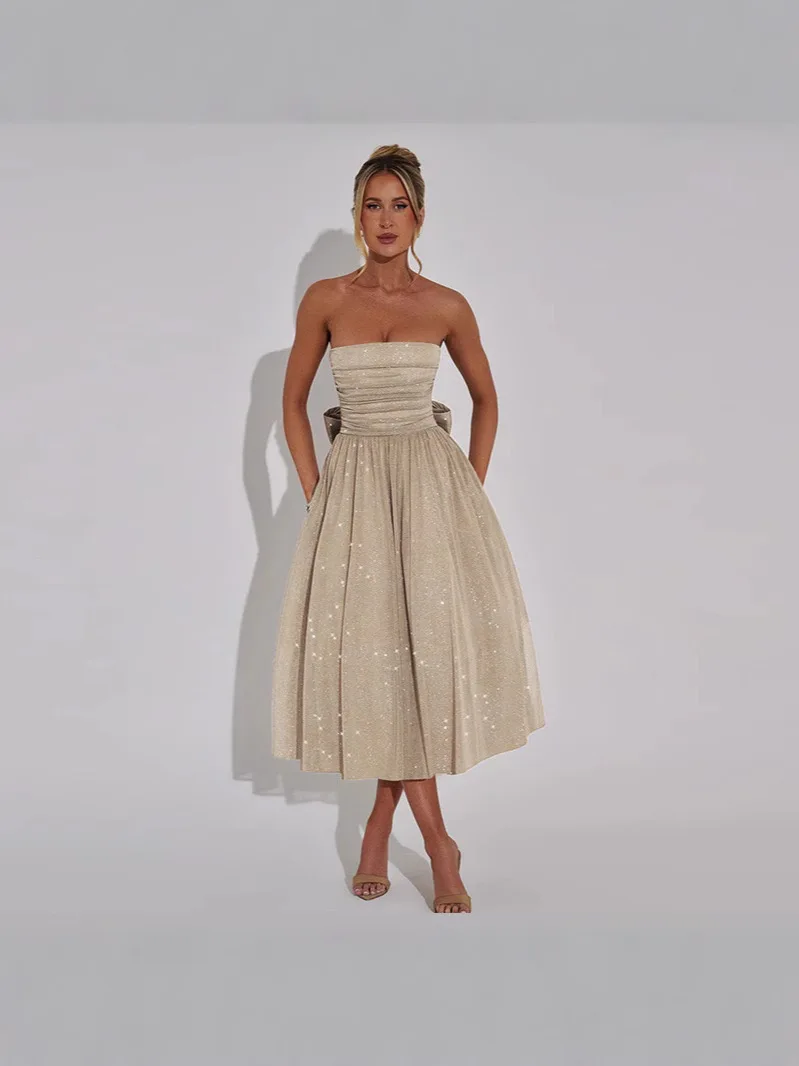Autumn Slim Fit Casual Dress One-Line Collar Strapless Backless Design with Eco-Friendly Mesh Patchwork Short Length