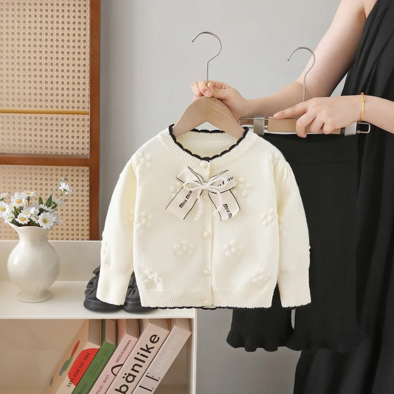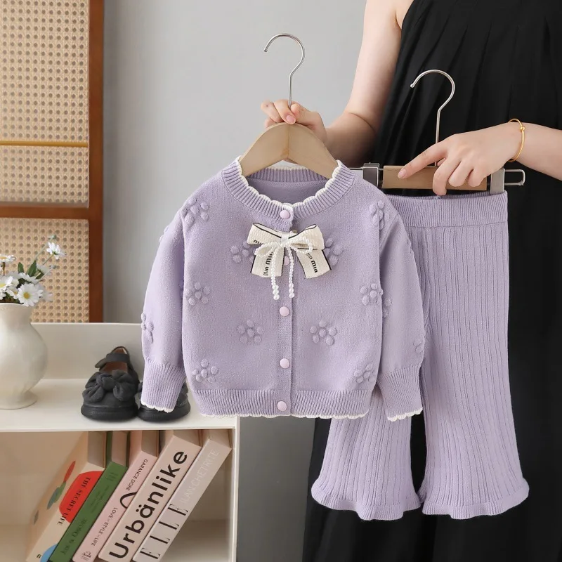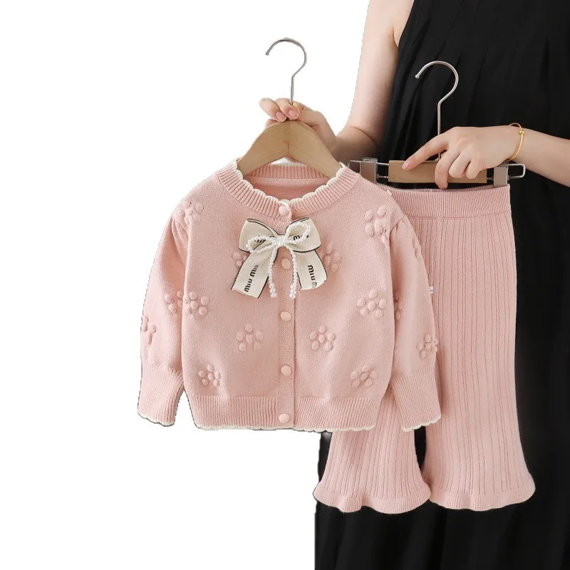 Autumn Style Small Shabby Chic Two-Piece Set for Little Girls New Online Popular Children’s Casual Solid Sweater Coat