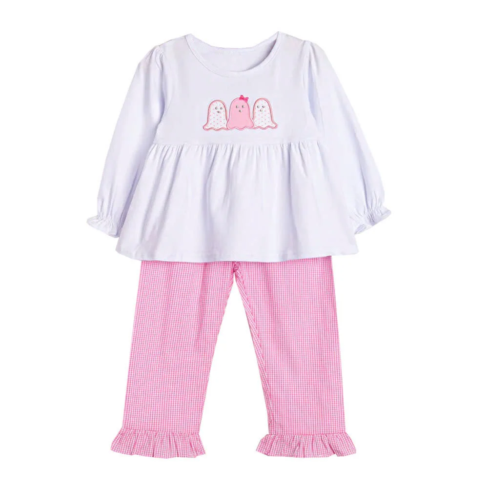 Autumn Vintage Style Baby Girls Clothing Set Cute Boo Halloween Appliqued Shirt and Pants