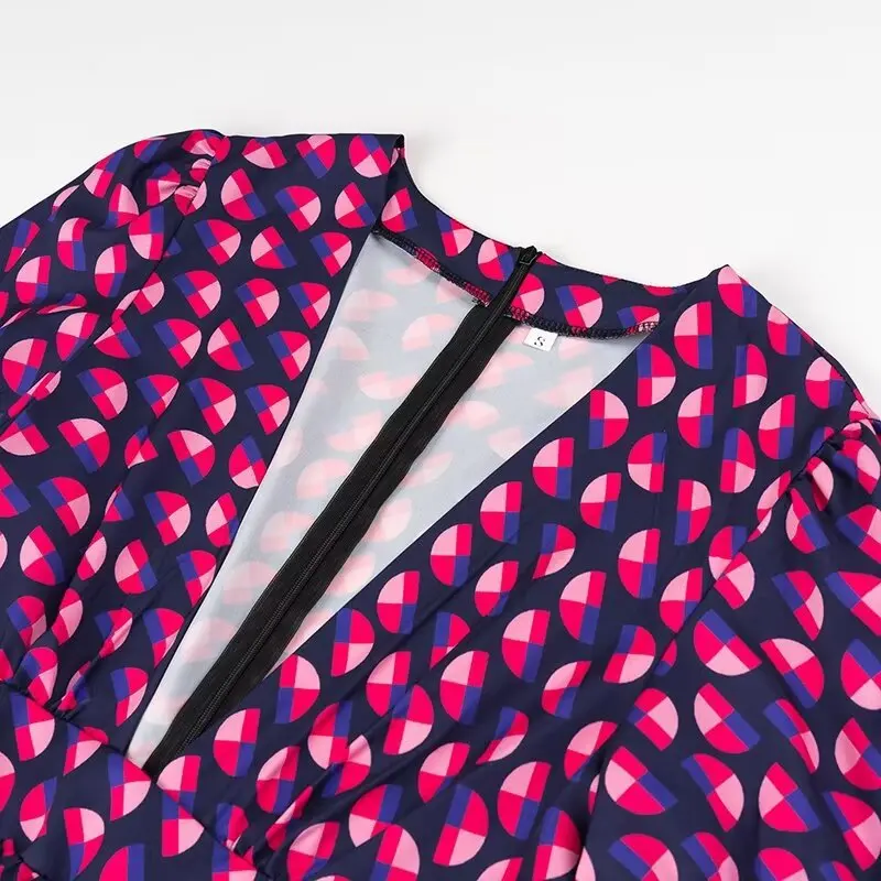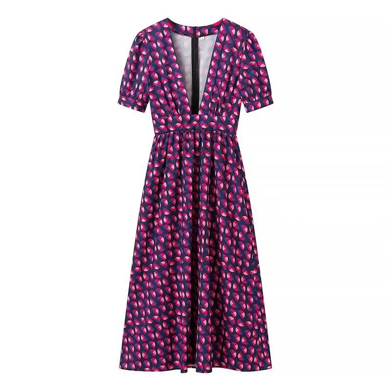 Autumn Winter Collection Floral V-Neck Printed Slim Floor-Length Dress Casual Natural Wholesale