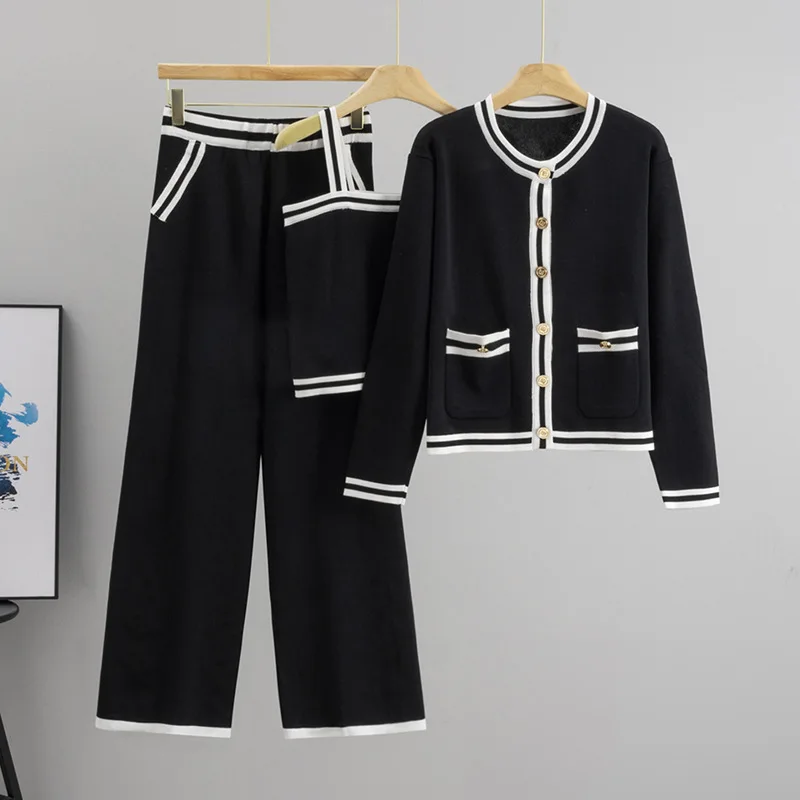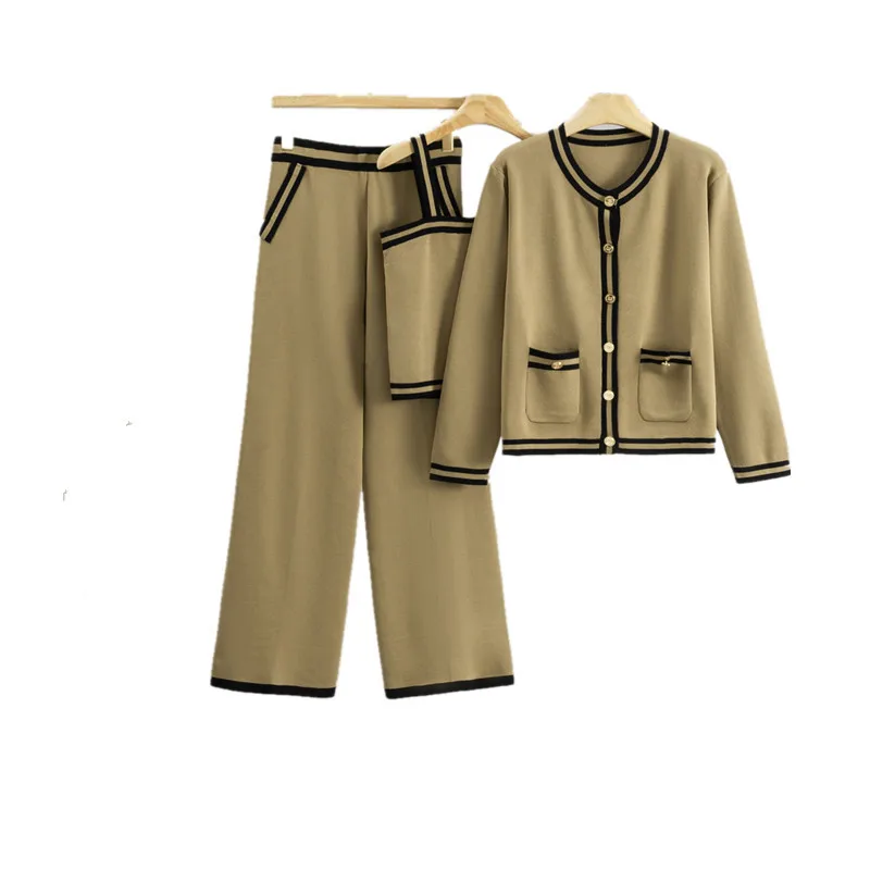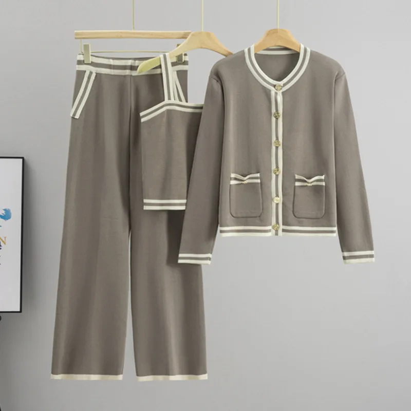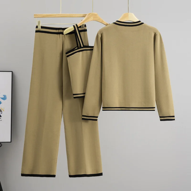 Autumn Women’s 3 Piece Knit Set Camisole + Button Cardigan + Long Pants Fashion Casual Outfit Matching Sets