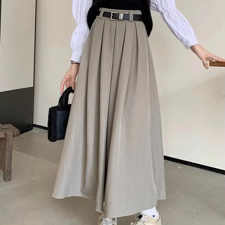 Boutique 2025 Autumn New Fashionable and Versatile Mid to Long Pleated Slimming Women’s Half Skirt