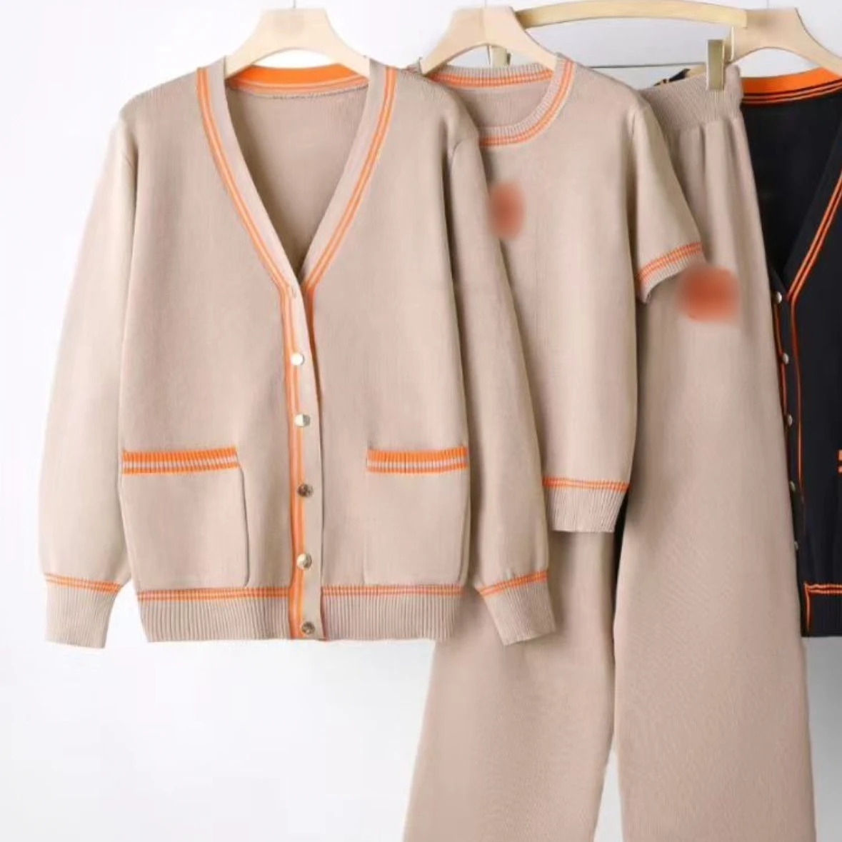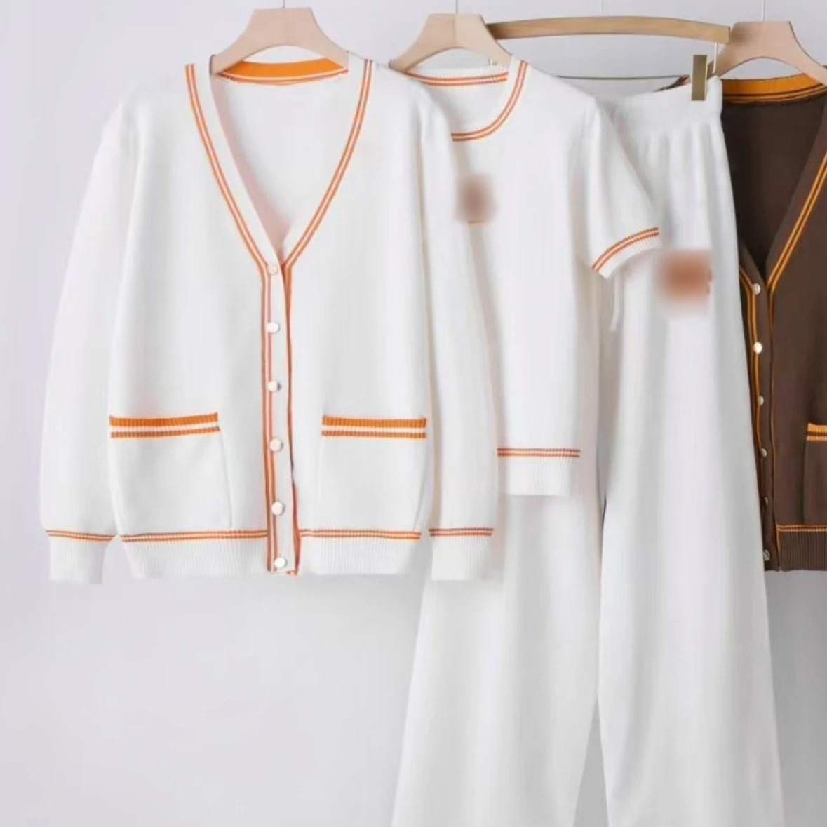 Boutique Wholesale 2025 Autumn New Fashion V Neck Knitted Cardigan Sweater Casual Wide Leg Pants Women’s Set