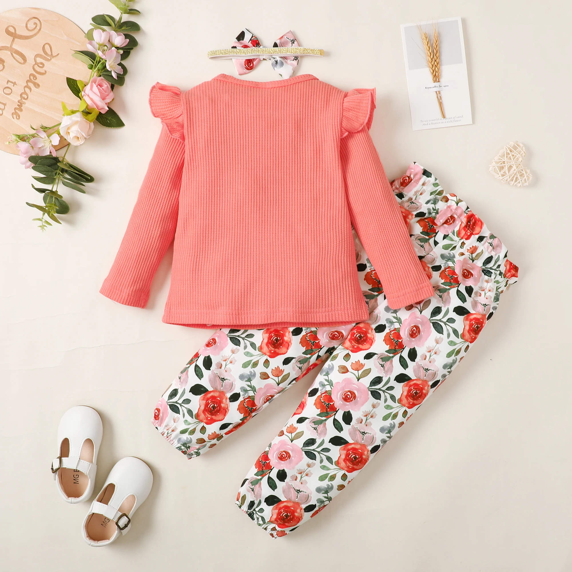 Casual Winter Boutique-Style Baby Girl Clothes for 18-24 Months Long Sleeves Solid Cotton Fabric Featuring Print Logo Patterns