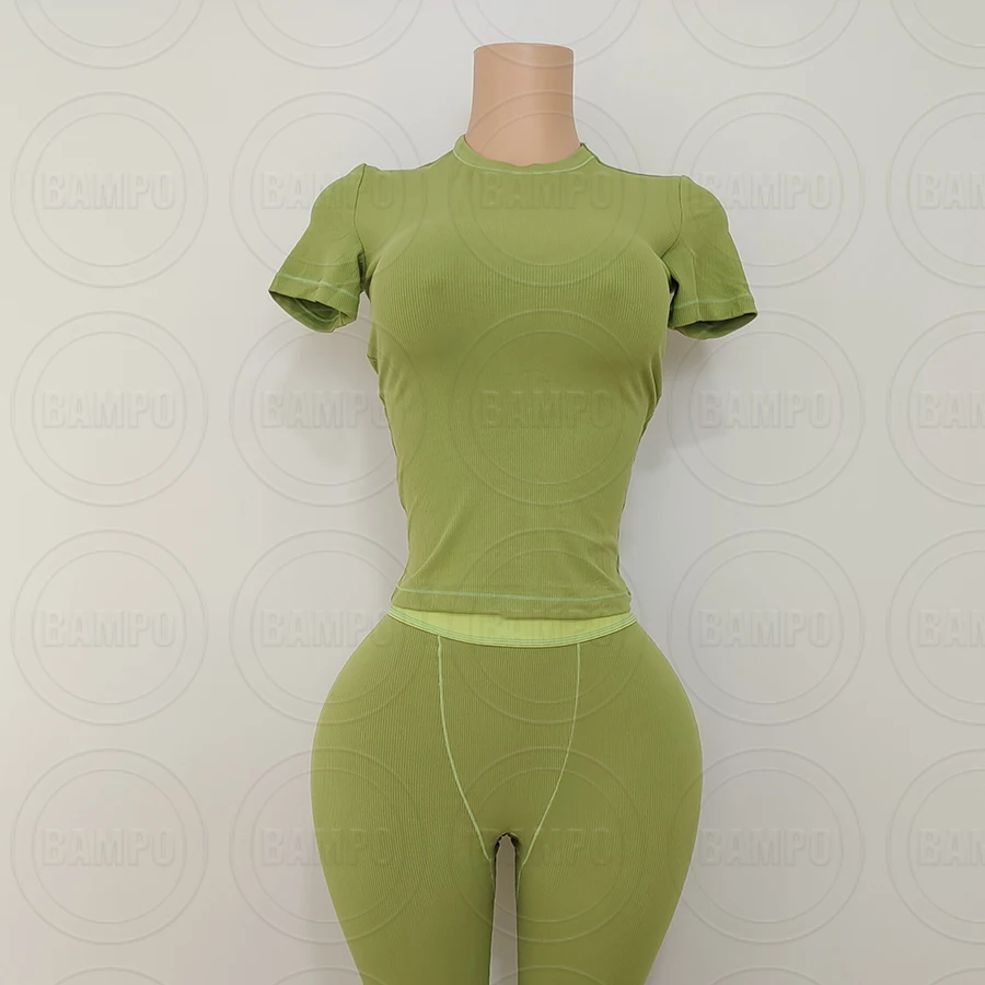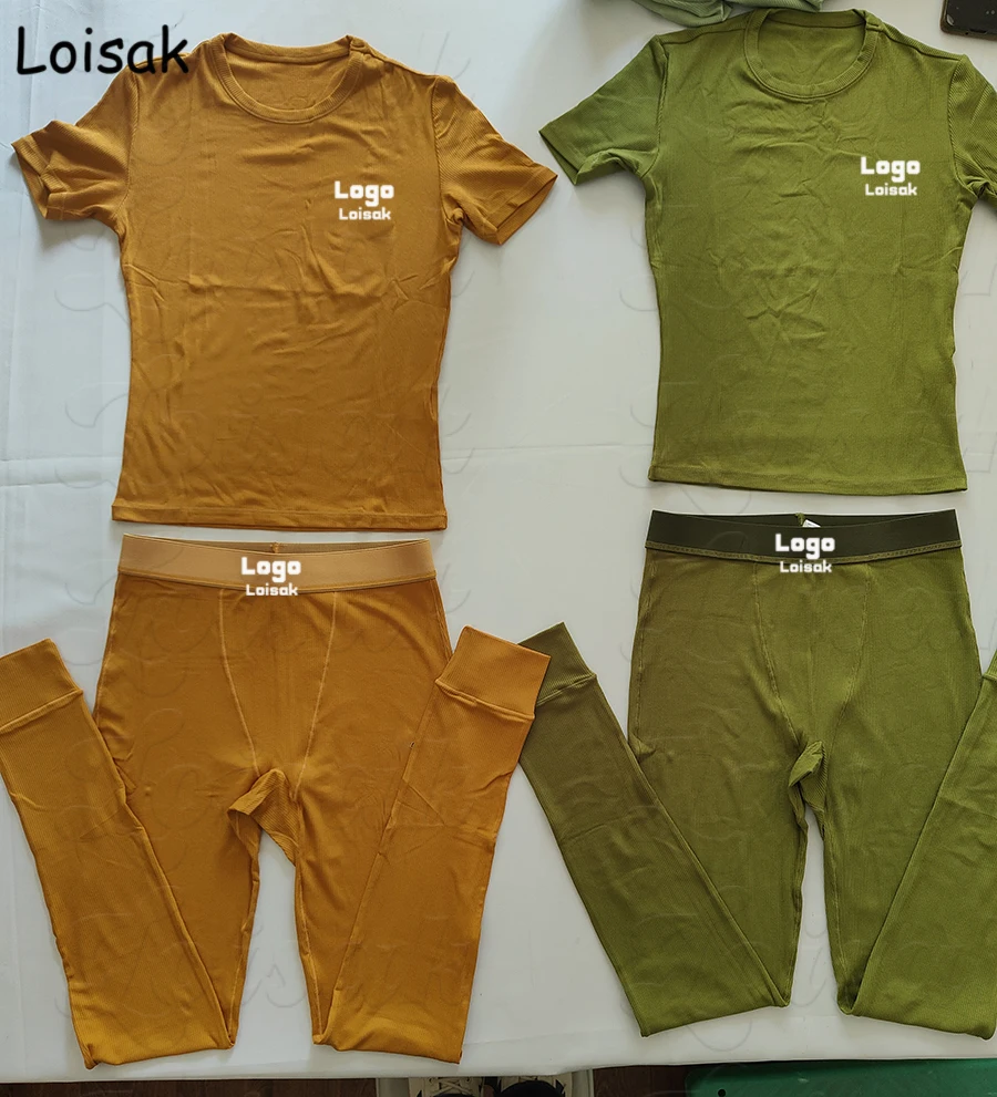 Custom Logo Cotton Ribbed Outfits Wholesale Womens Clothing Autumn Winter Shirts Legging Loungewear Women Two Pieces Set