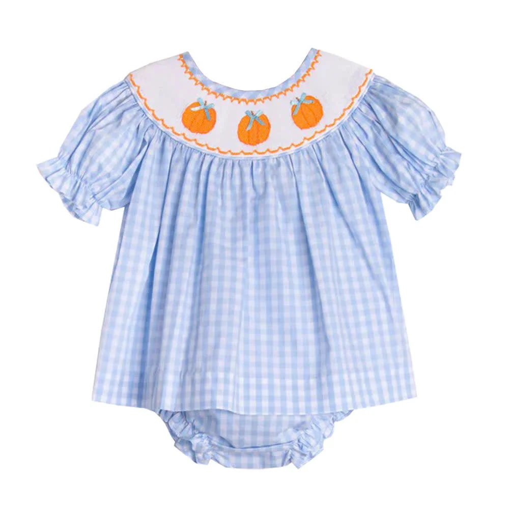 Cute Vintage Baby Girls Smocked Halloween Pumpkins Autumn Bloomers Set Breathable Feature for the Season