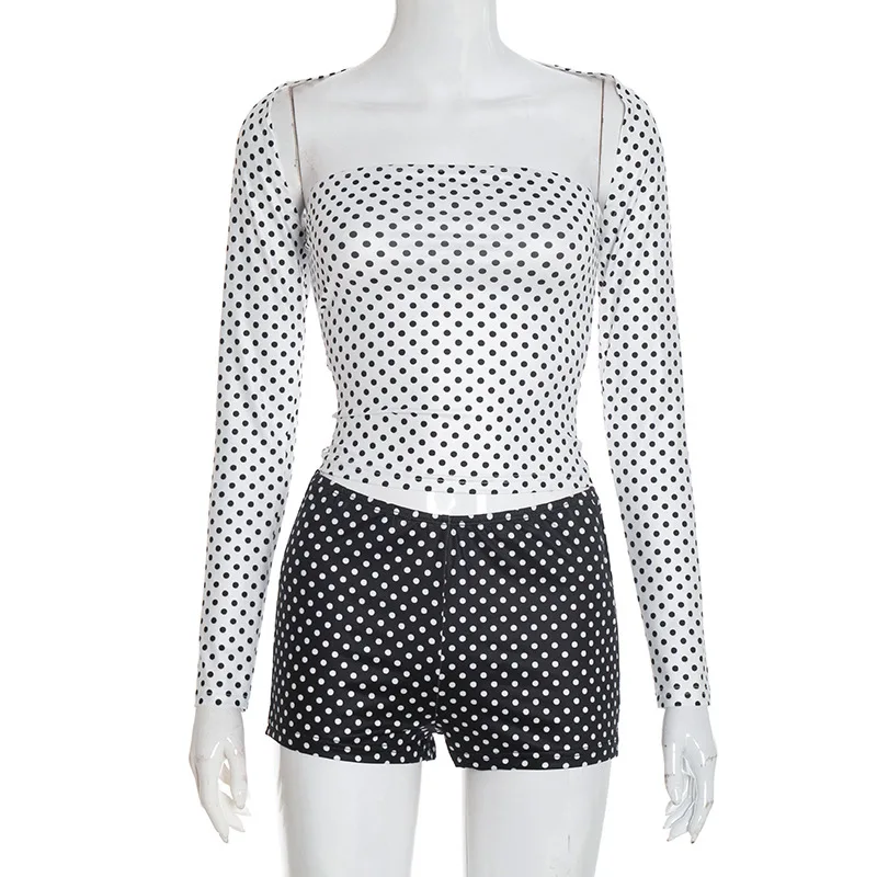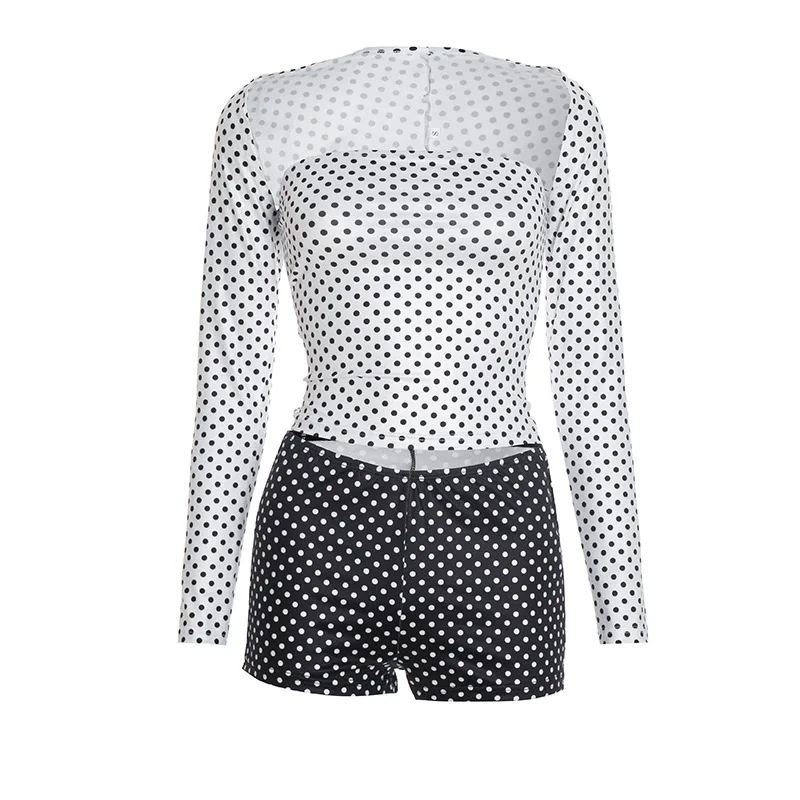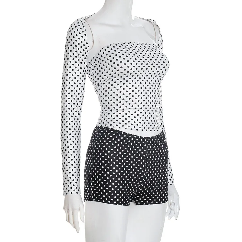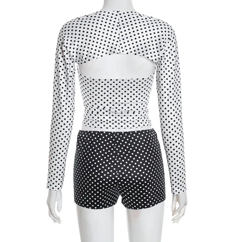 CUTENOVA D25ST398 Ladies Outfits Autumn Winter Sexy Polka Dot Long Sleeved Shawl Shorts Vest Retro Three Piece Set for Women