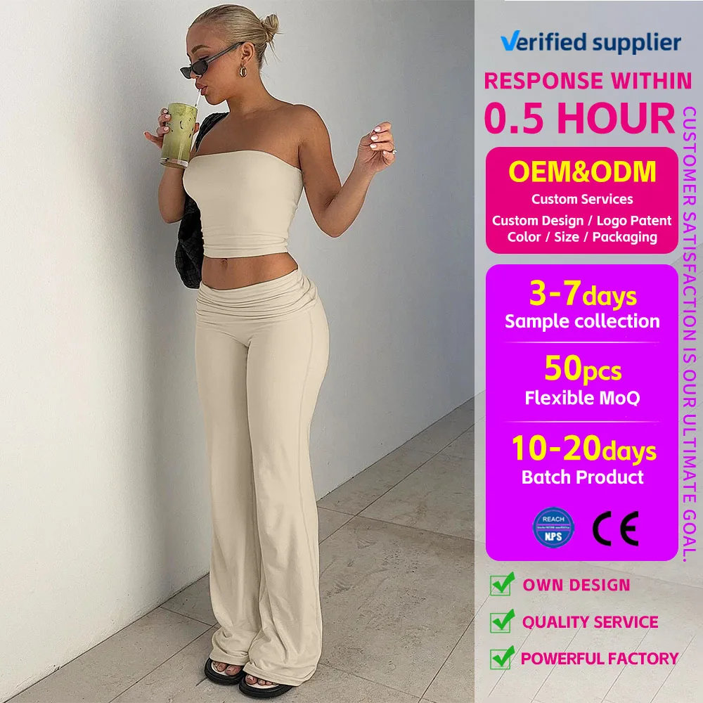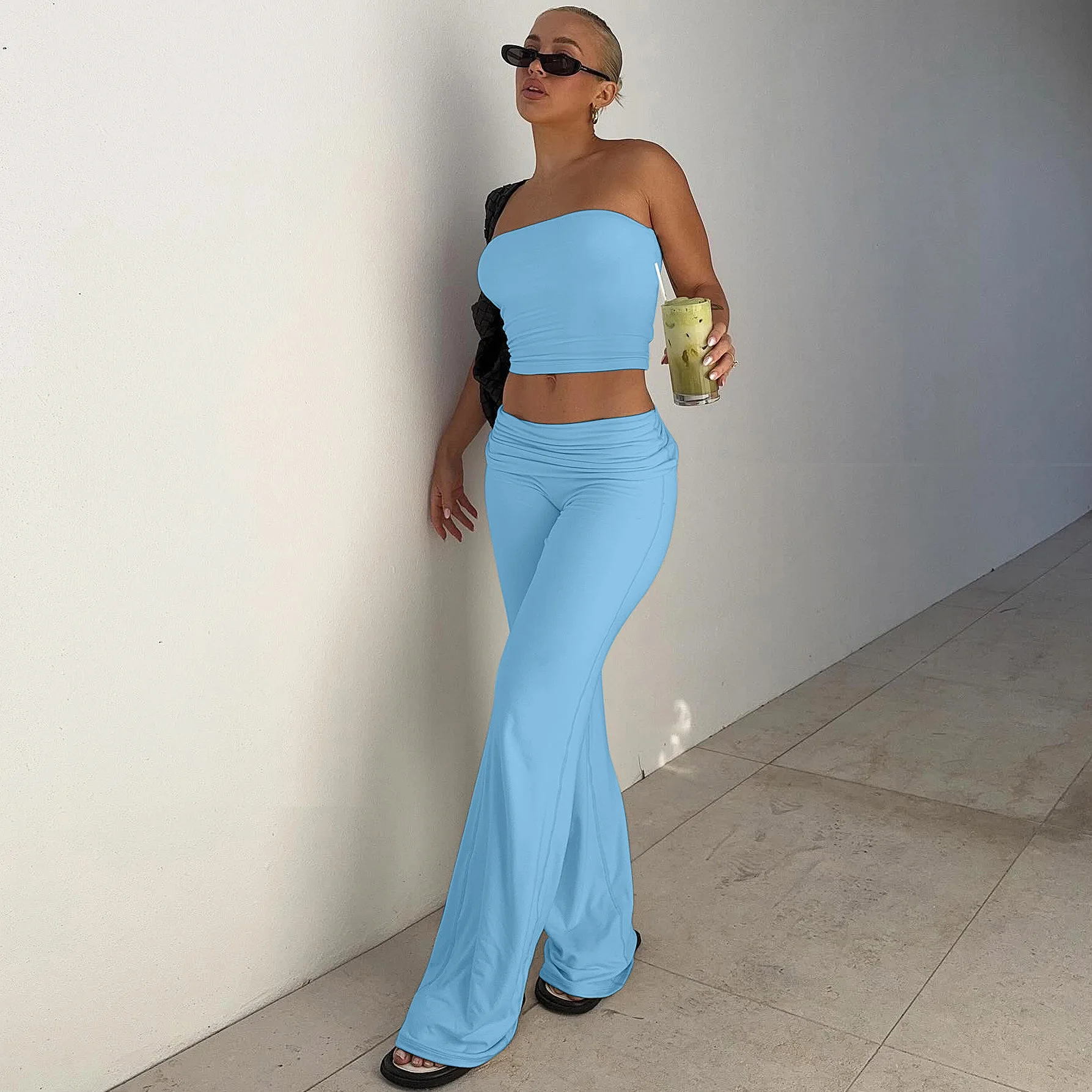 Dress Factory Hot Sale New Autumn Style Europe America Solid Color Sleeveless Top Flared Pants Regular Fit 2-Piece Women’s Set