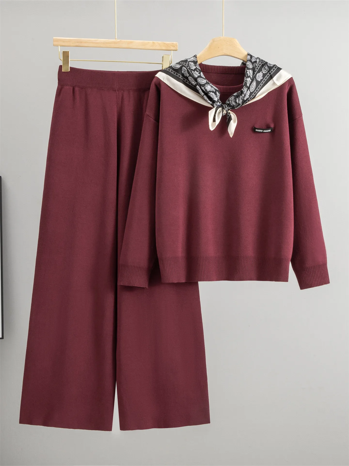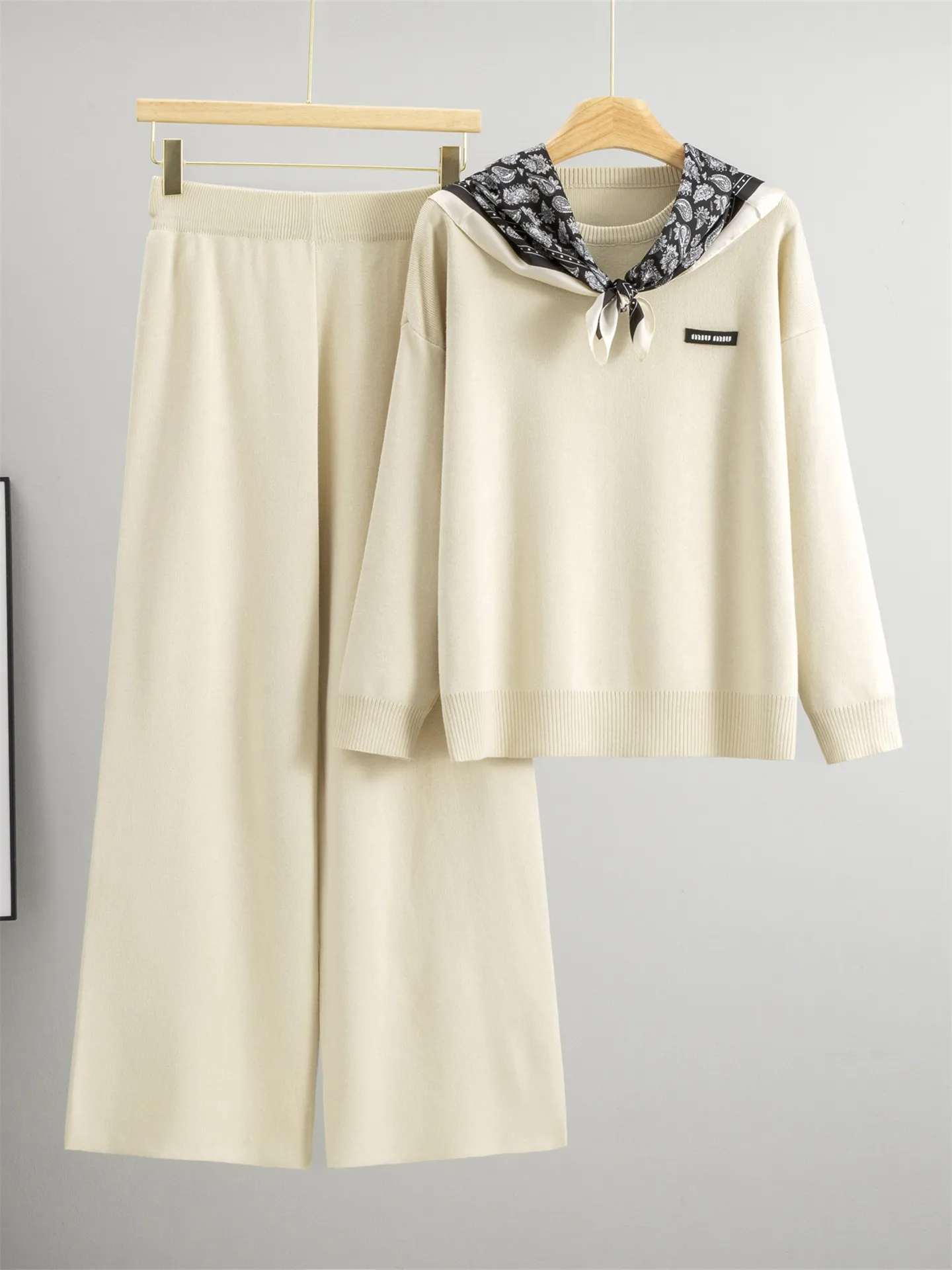 Elegant Korean Style Women’s Anti-Pilling Knitted Worsted Fabric Autumn Winter Three-Piece Set Casual Solid Pattern
