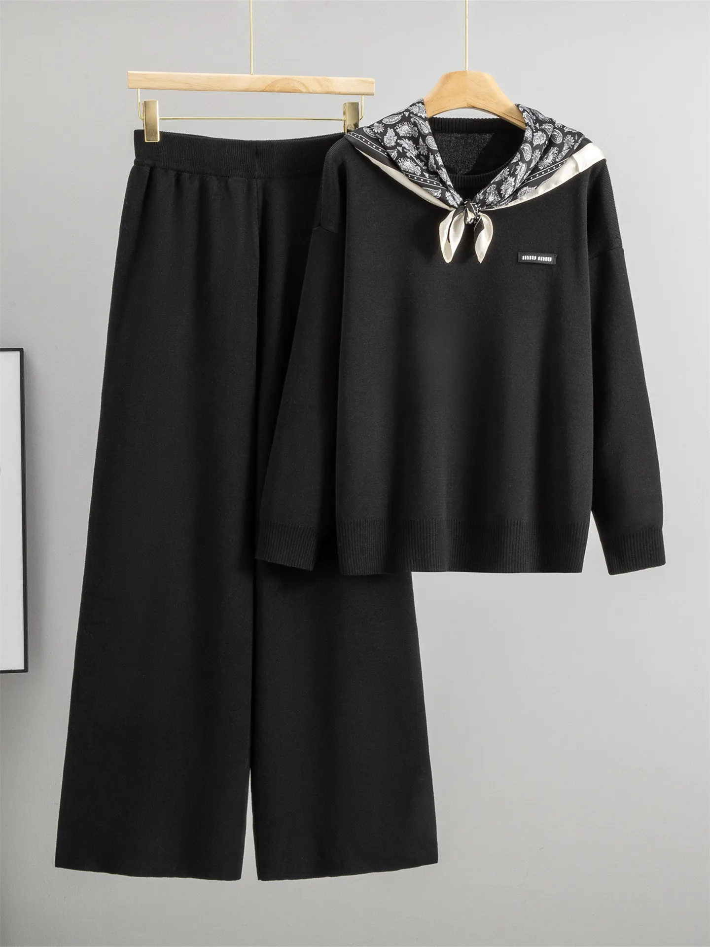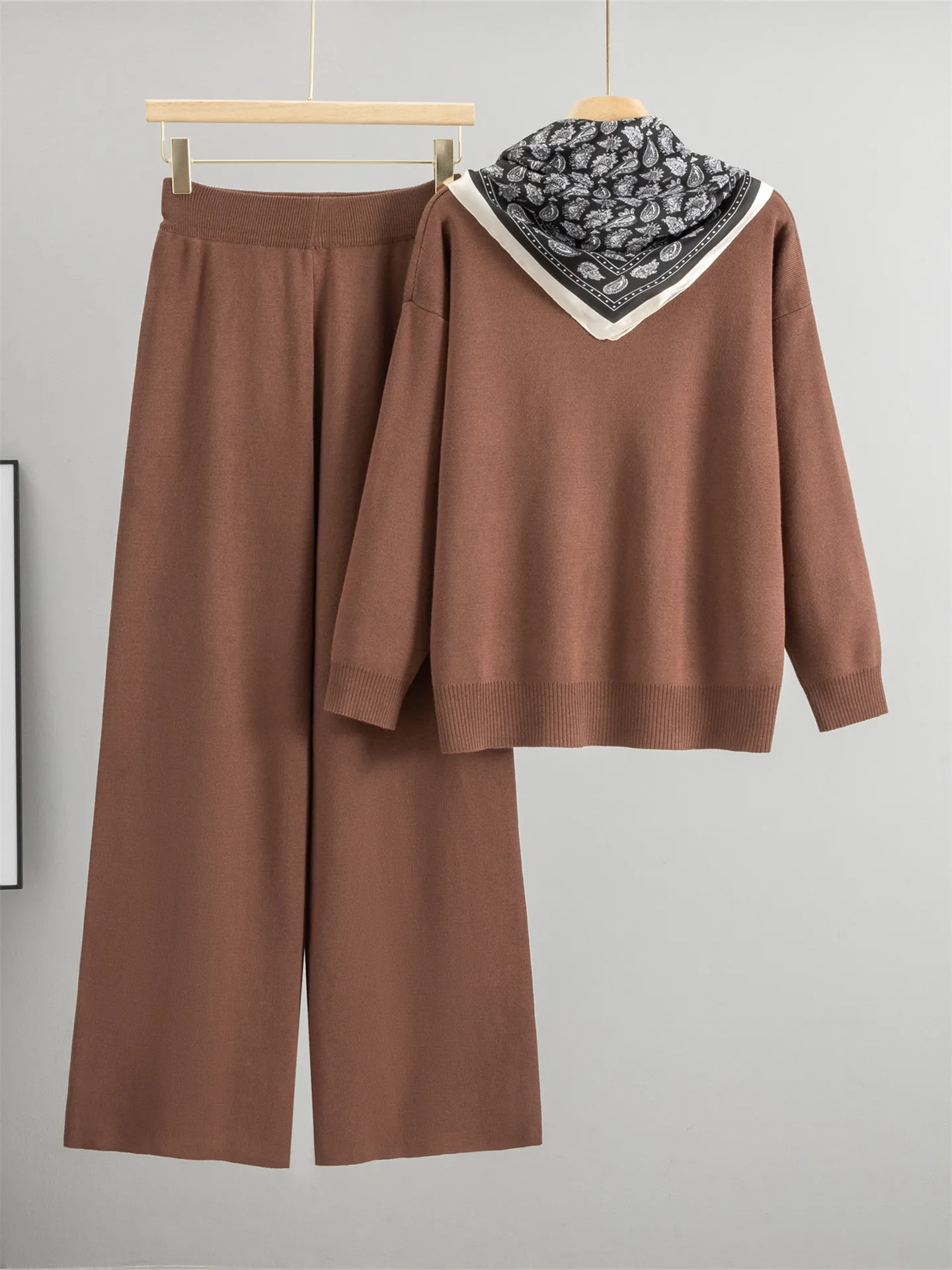 Be the first to review “Elegant Korean Style Women’s Anti-Pilling Knitted Worsted Fabric Autumn Winter Three-Piece Set Casual Solid Pattern”