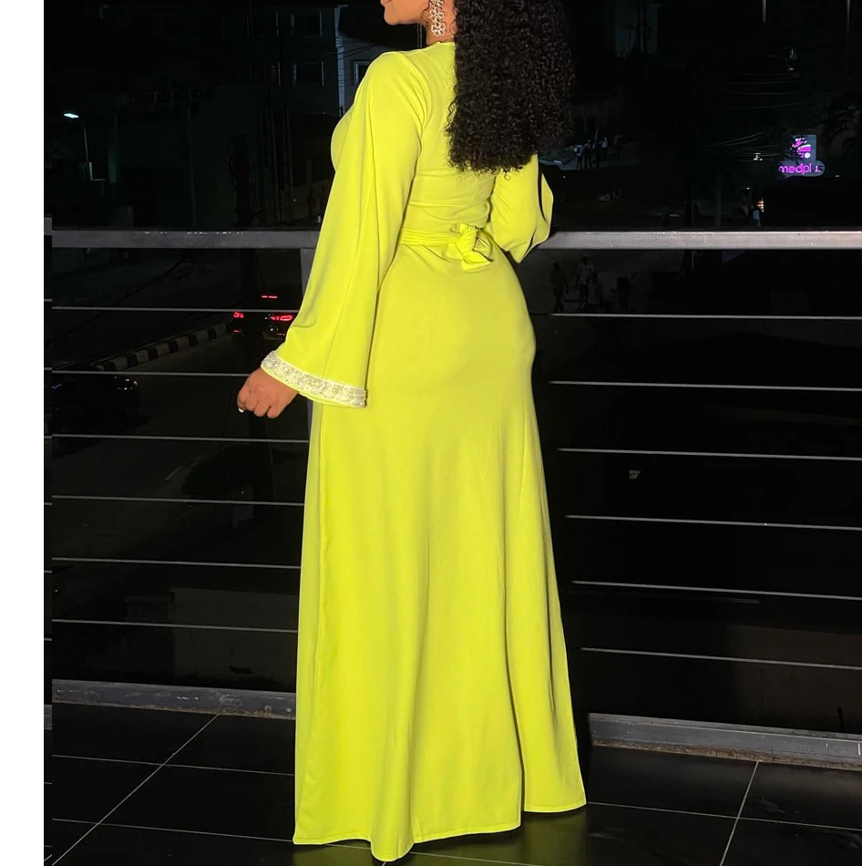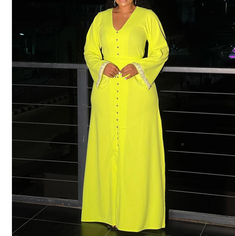 Be the first to review “Elegant Woman Dress Casual-Formal-Sweet-Party Breathable V-Neck Floor-Length Lace Decorated Solid Autumn S Pleated Sexy”