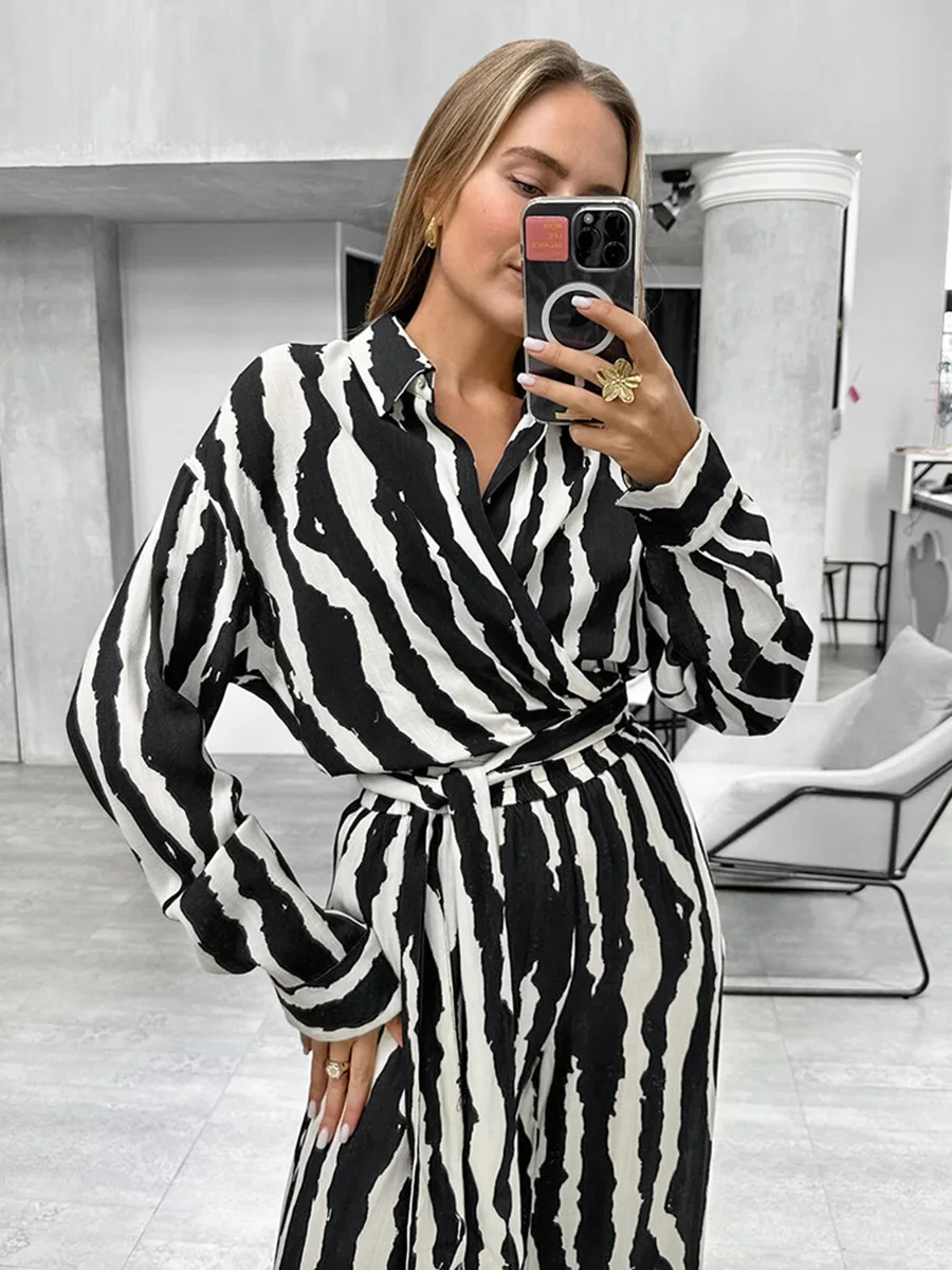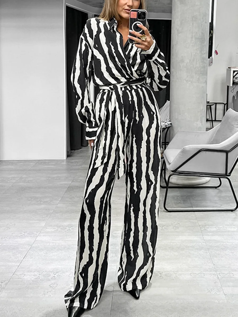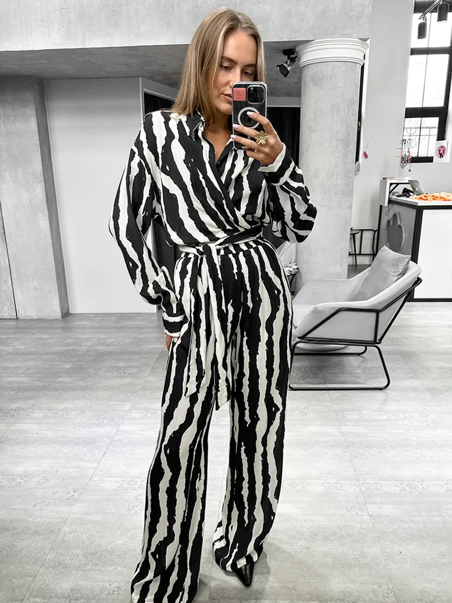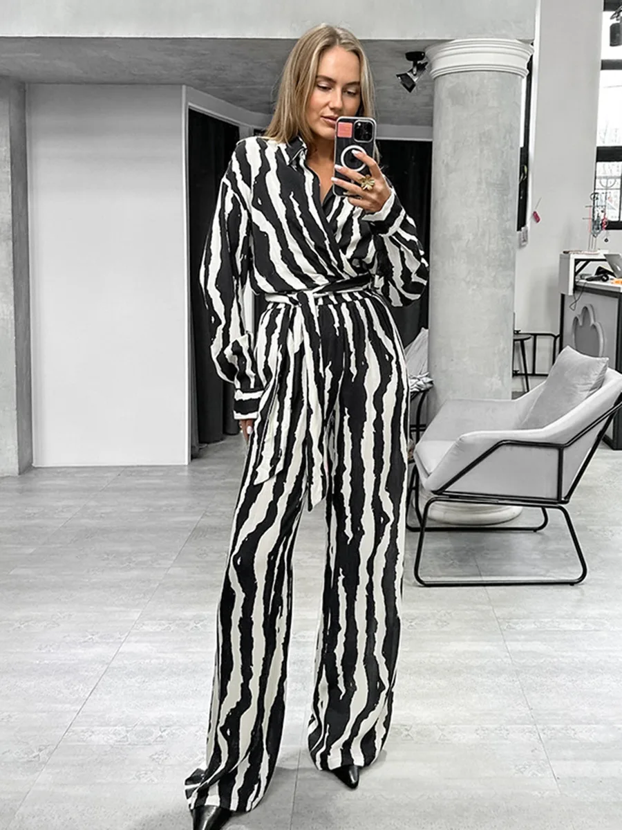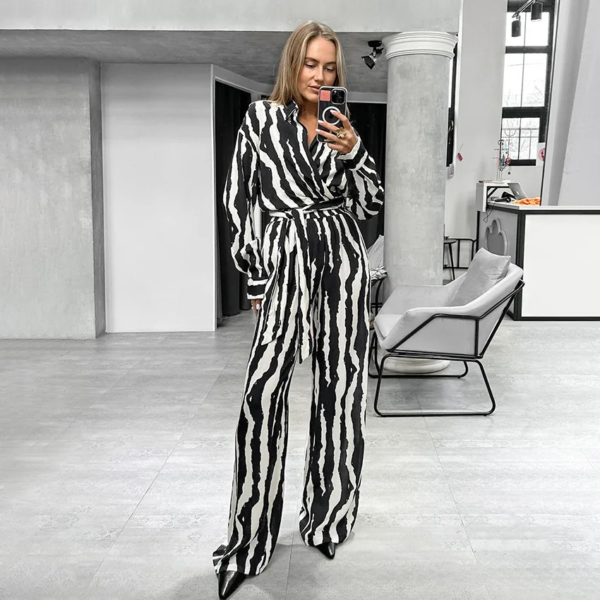 European American Women’s Casual Clothing 2025 Spring Fashion Zebra Print Lace-up Cardigan Long Trousers Loose Fit for Autumn