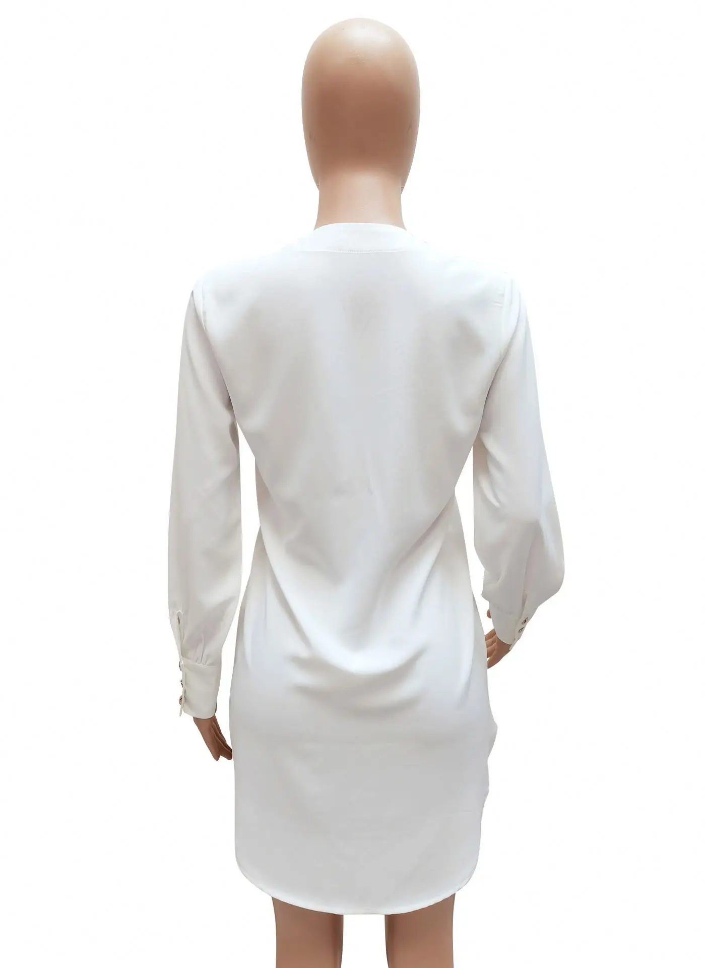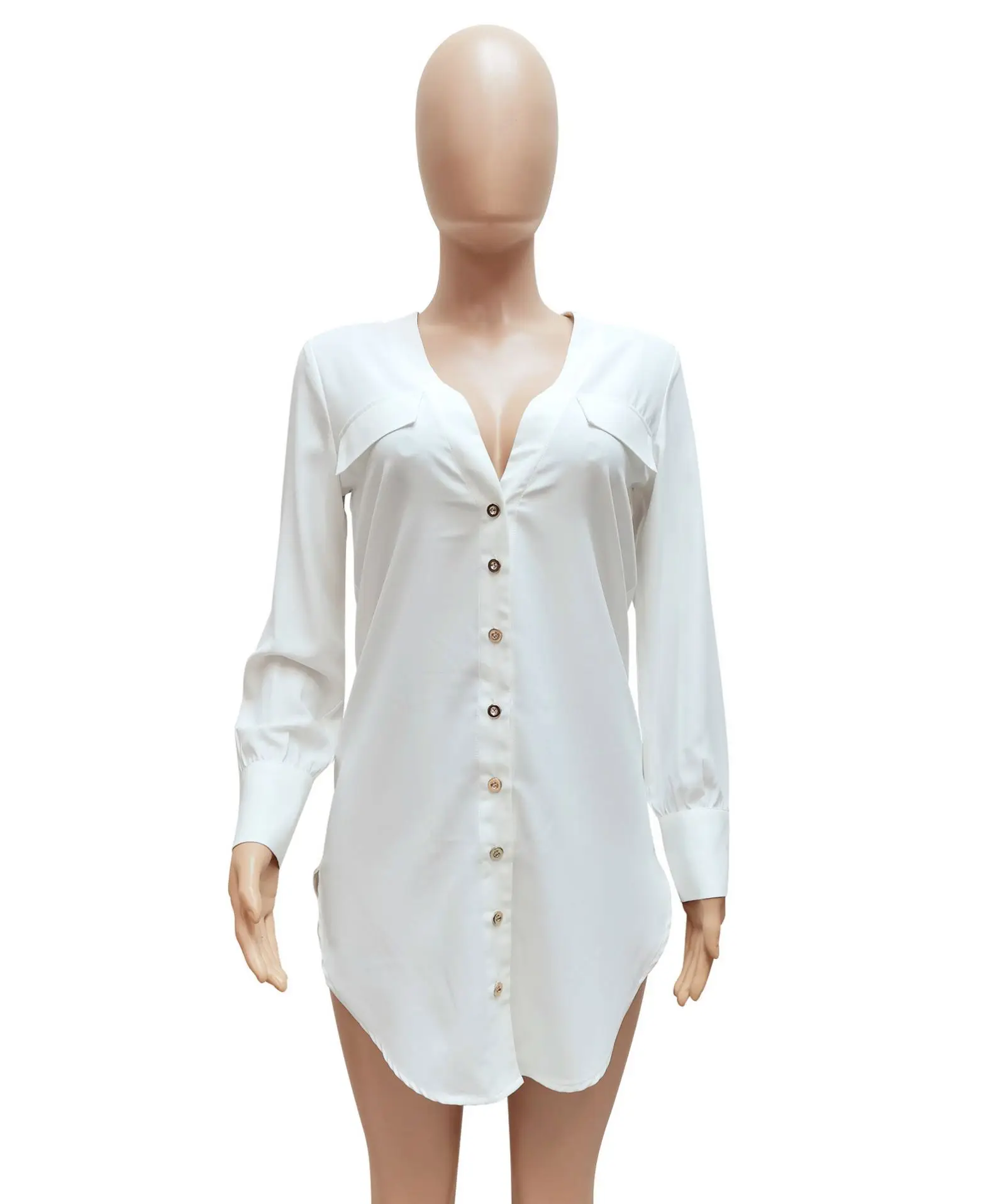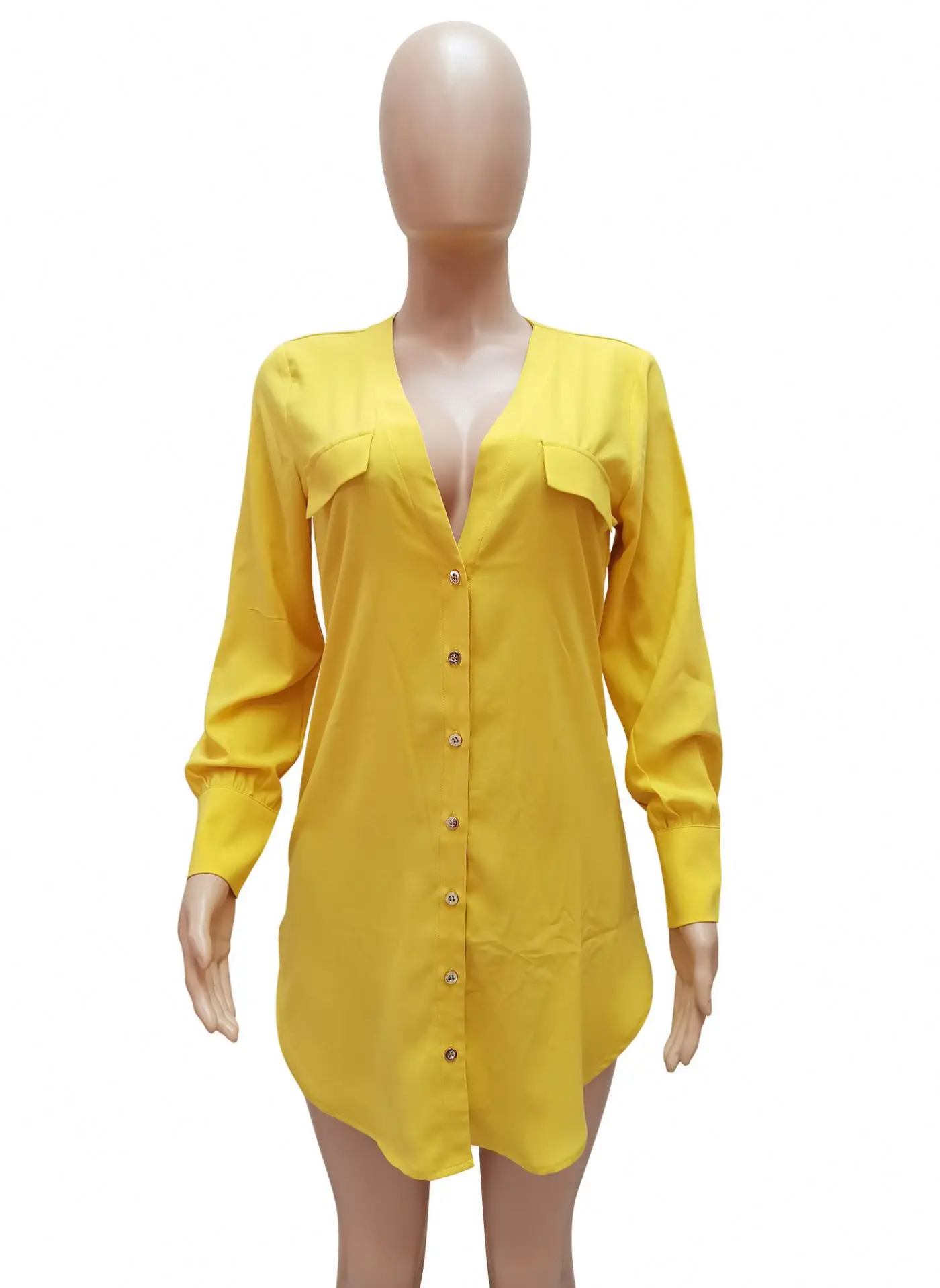 Fall 2025 Women Clothes Casual Solid Color Shirt V-neck Single-breasted Long-sleeved Women Clothing Dress