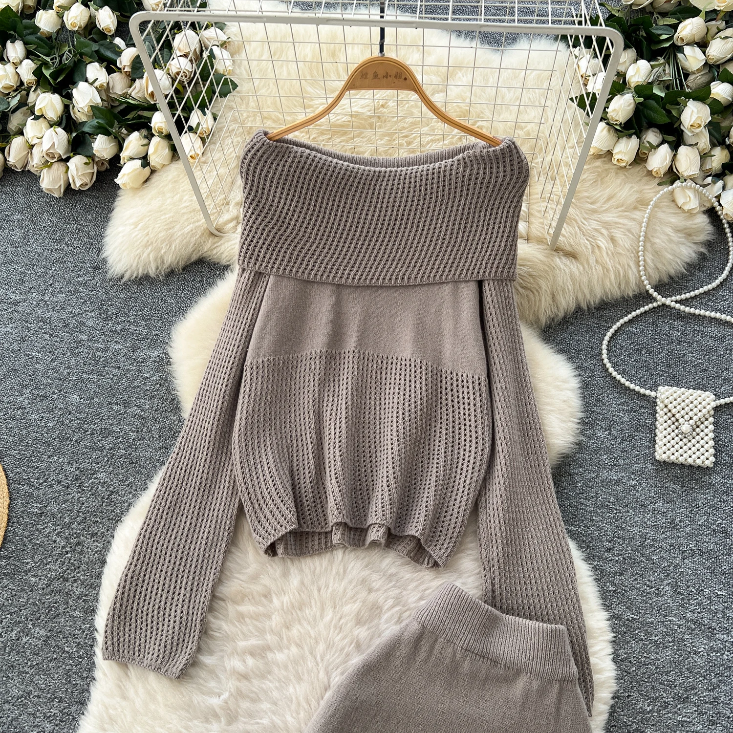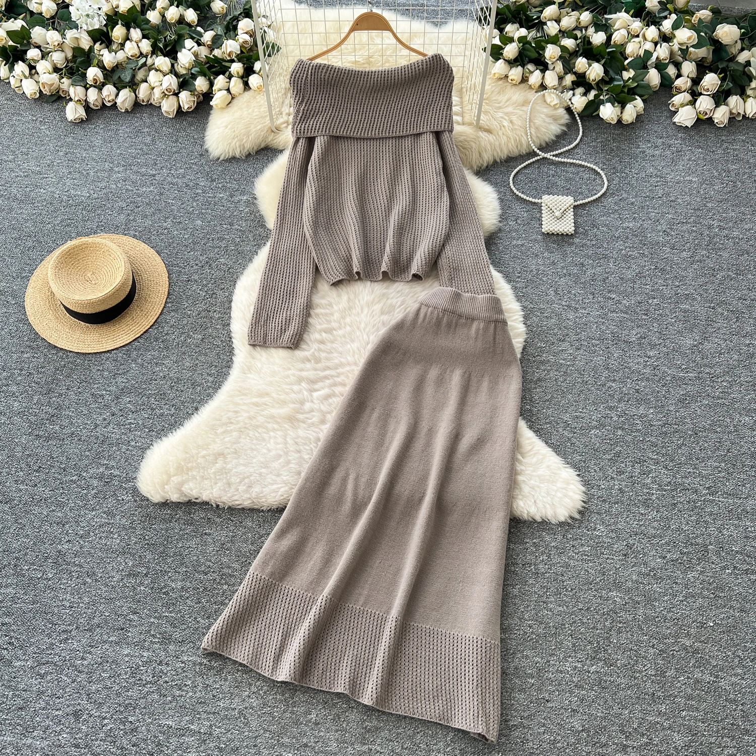 Be the first to review “Fall Elegant Loose 2 Piece Set for Women Top And High Waist Knitted Skirts Suit Clothing Wholesale”